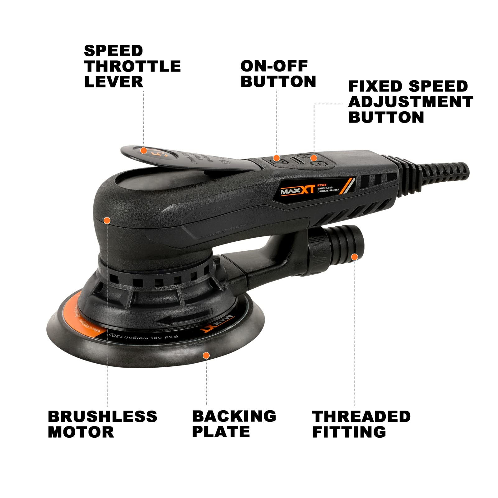 - MAXXT Brushless 5.0mm Random Orbital Sander | 230V Multi-Function | Variable Speed | Electric Orbital Sander -