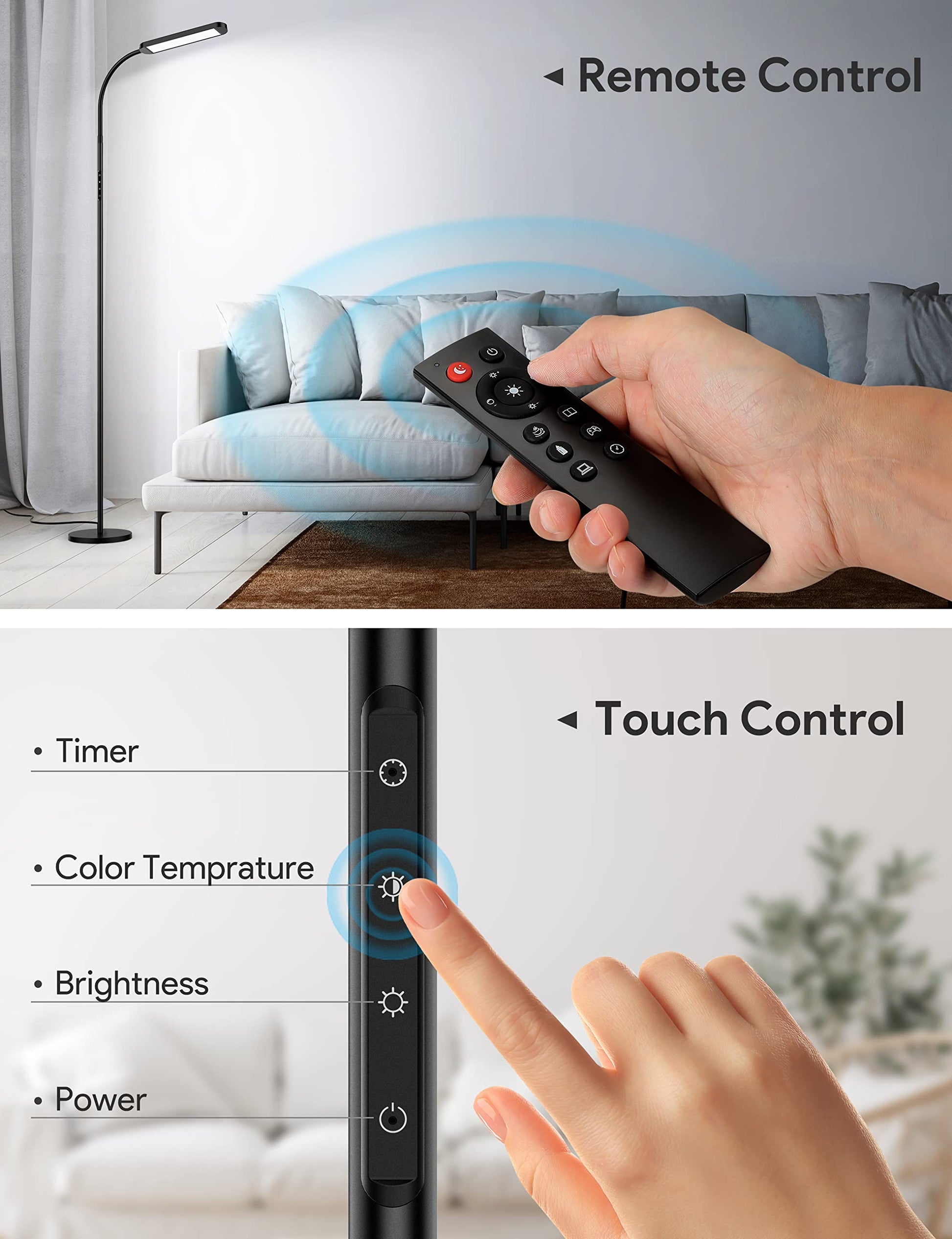 - Control Methods: Remote & Touch