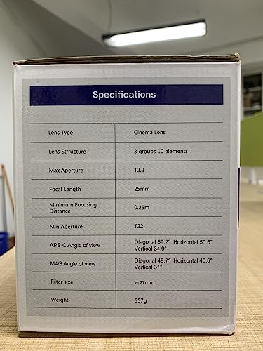 - Wide Aperture (T2.2): Ideal for low-light conditions, this lens allows you to capture beautiful images even in dark environments, making it a great option for night photography or creative bokeh effects.