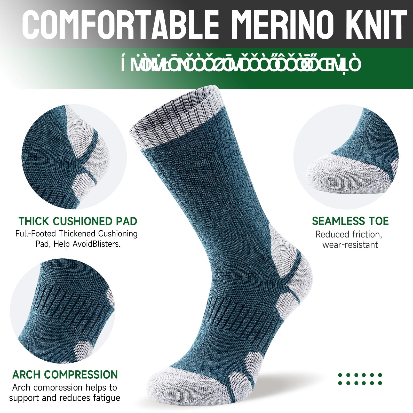 - Premium Wool Blend: Made with 50% Merino wool, 30% nylon, 17% acrylic, and 3% spandex for superior temperature control and moisture-wicking performance.