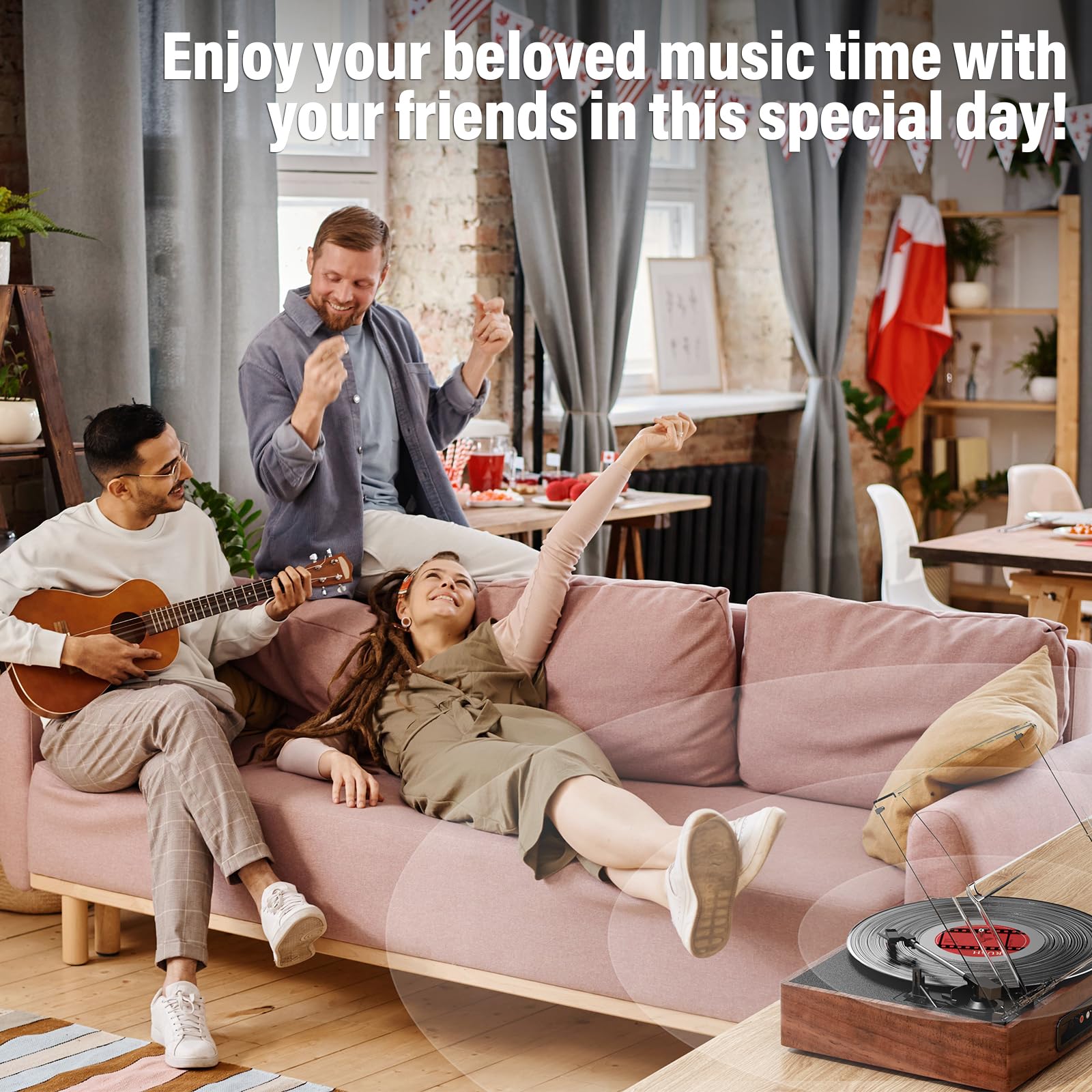 - 3-Speed Belt-Driven Record Player: Supports 33-1/3 RPM, 45 RPM, and 78 RPM, allowing you to enjoy all types of vinyl records.