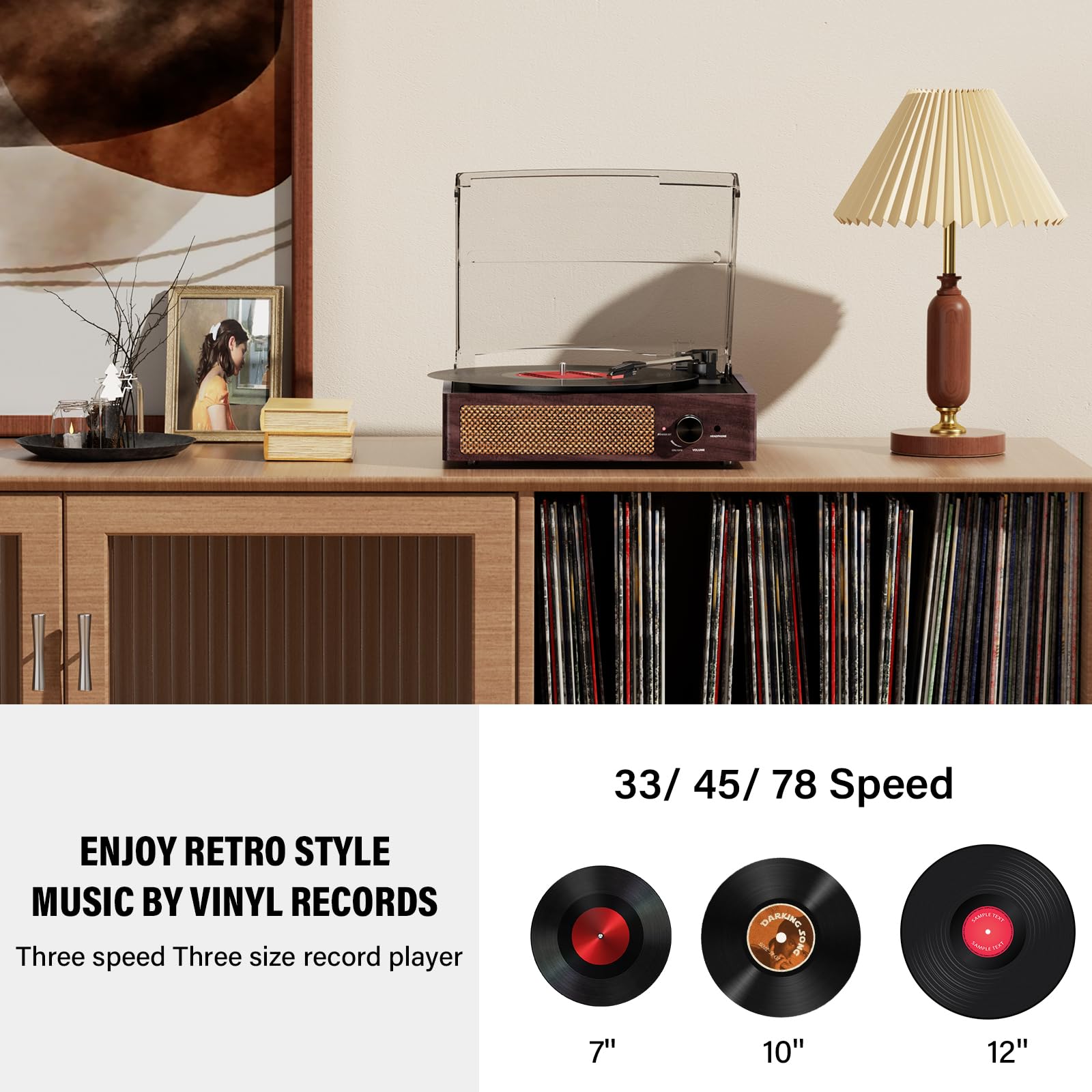 - Supports multiple record speeds (33-1/3 RPM, 45 RPM, 78 RPM)