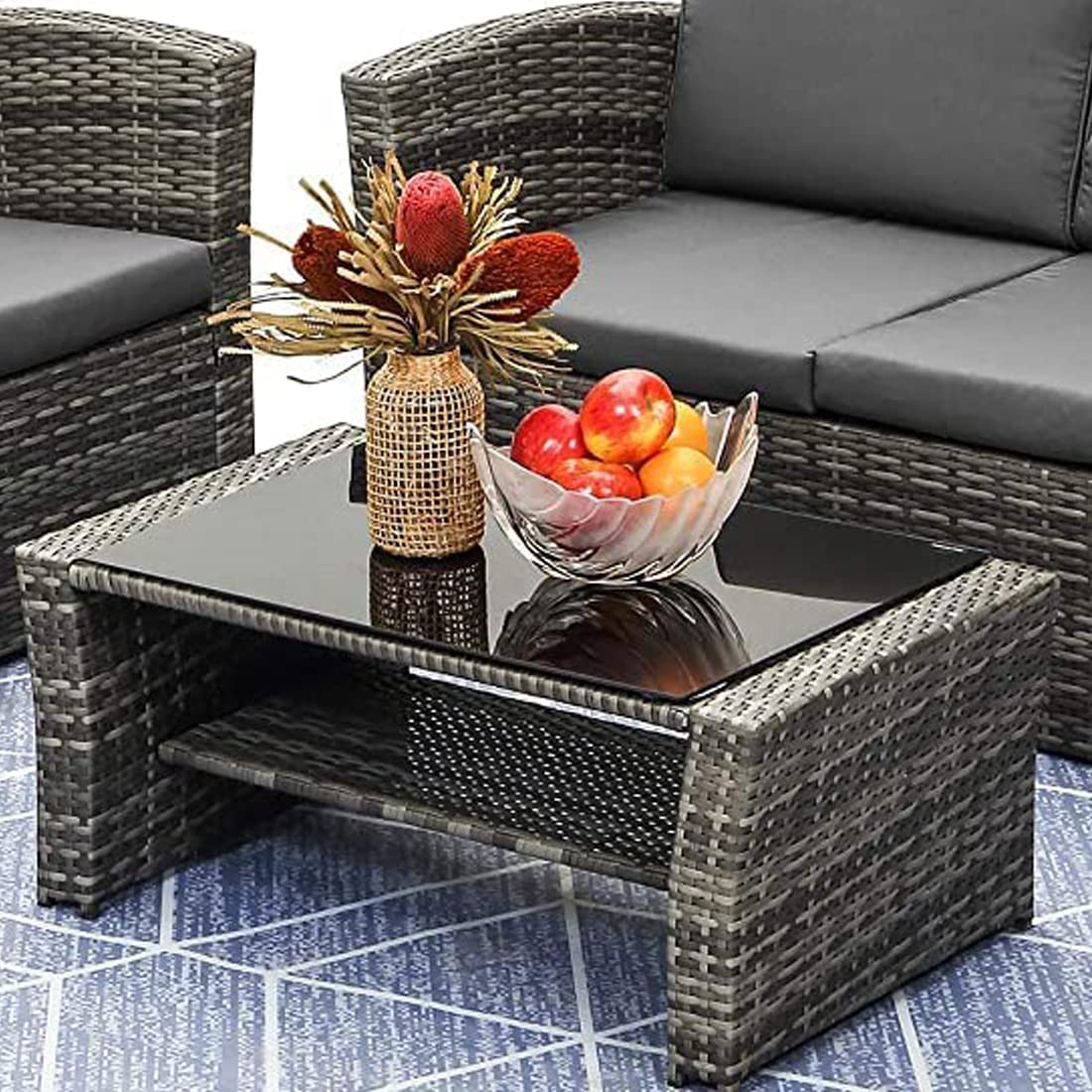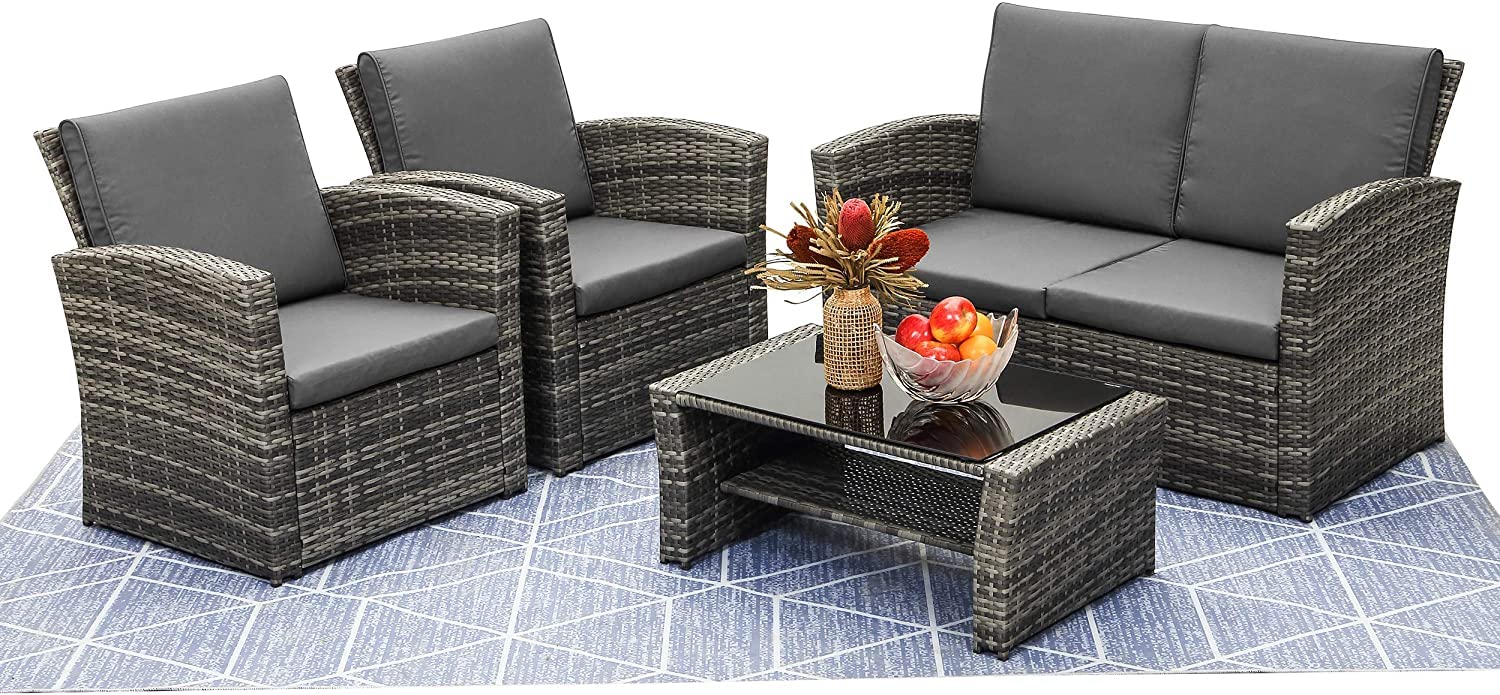 - Durable & Stylish: Constructed from high-quality rattan, this garden furniture set is designed to withstand various weather conditions while maintaining its contemporary shadow grey aesthetic.