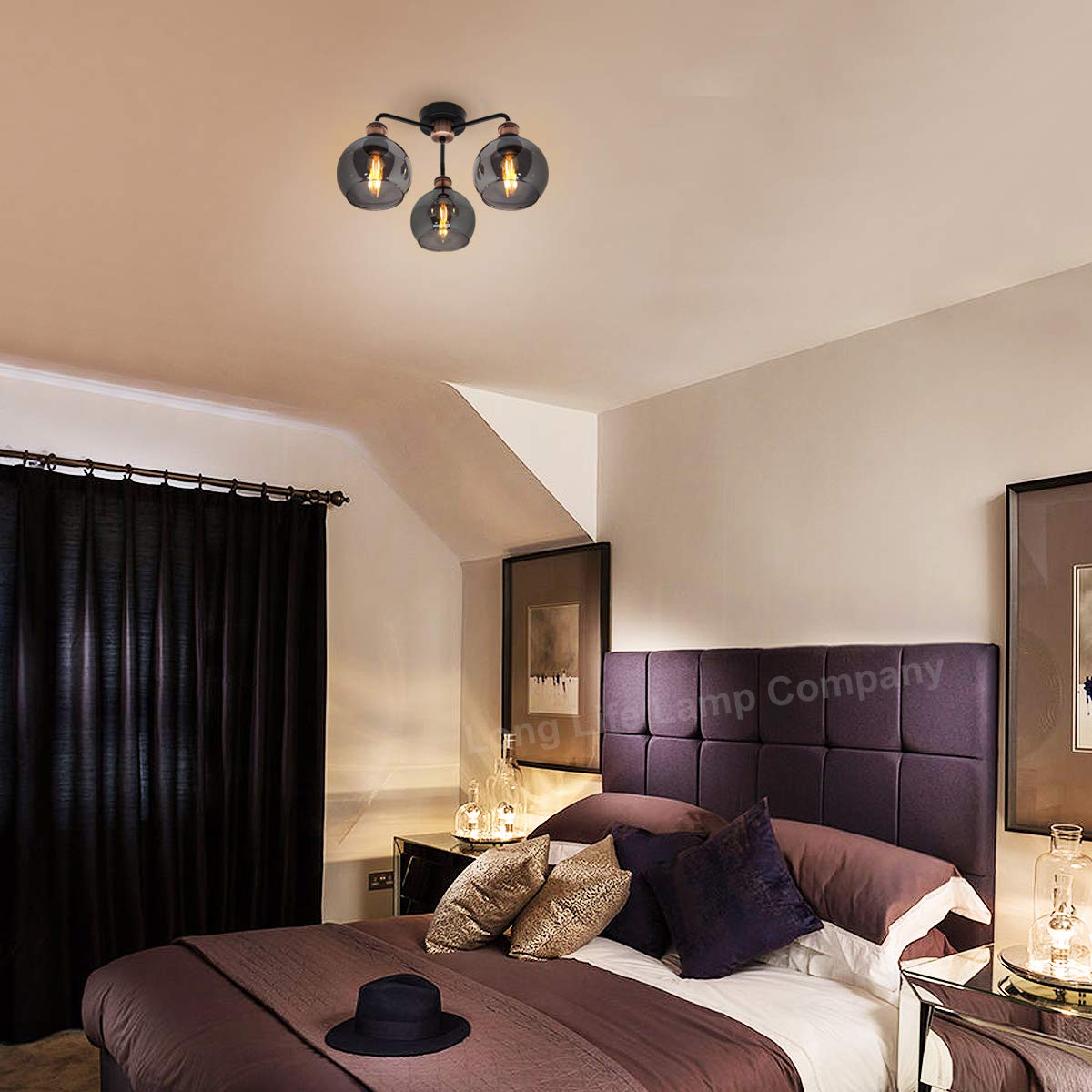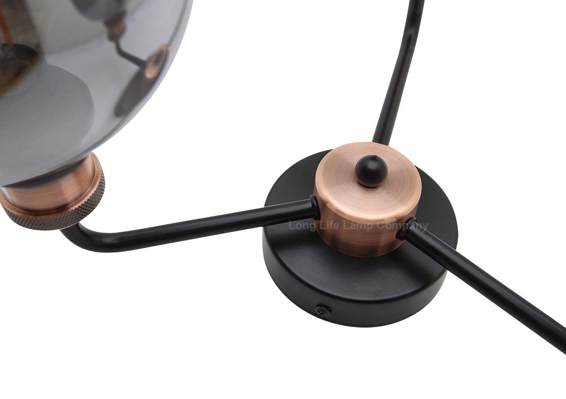 Bring a unique vintage-industrial aesthetic to your home with this stunning ceiling light. Featuring a modern grey smoked glass globe, antique copper lamp holders, and a sleek black industrial framework, it blends old-world charm with contemporary elegance.