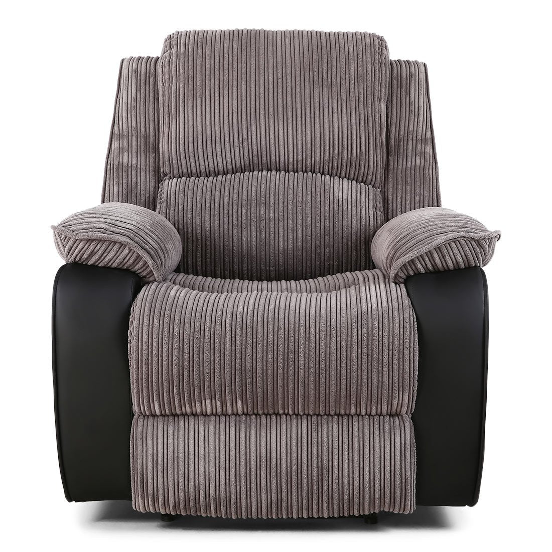 - Stylish Upholstery: Upholstered in soft jumbo cord fabric with contrasting faux leather sides, this recliner brings a stylish touch to any room.