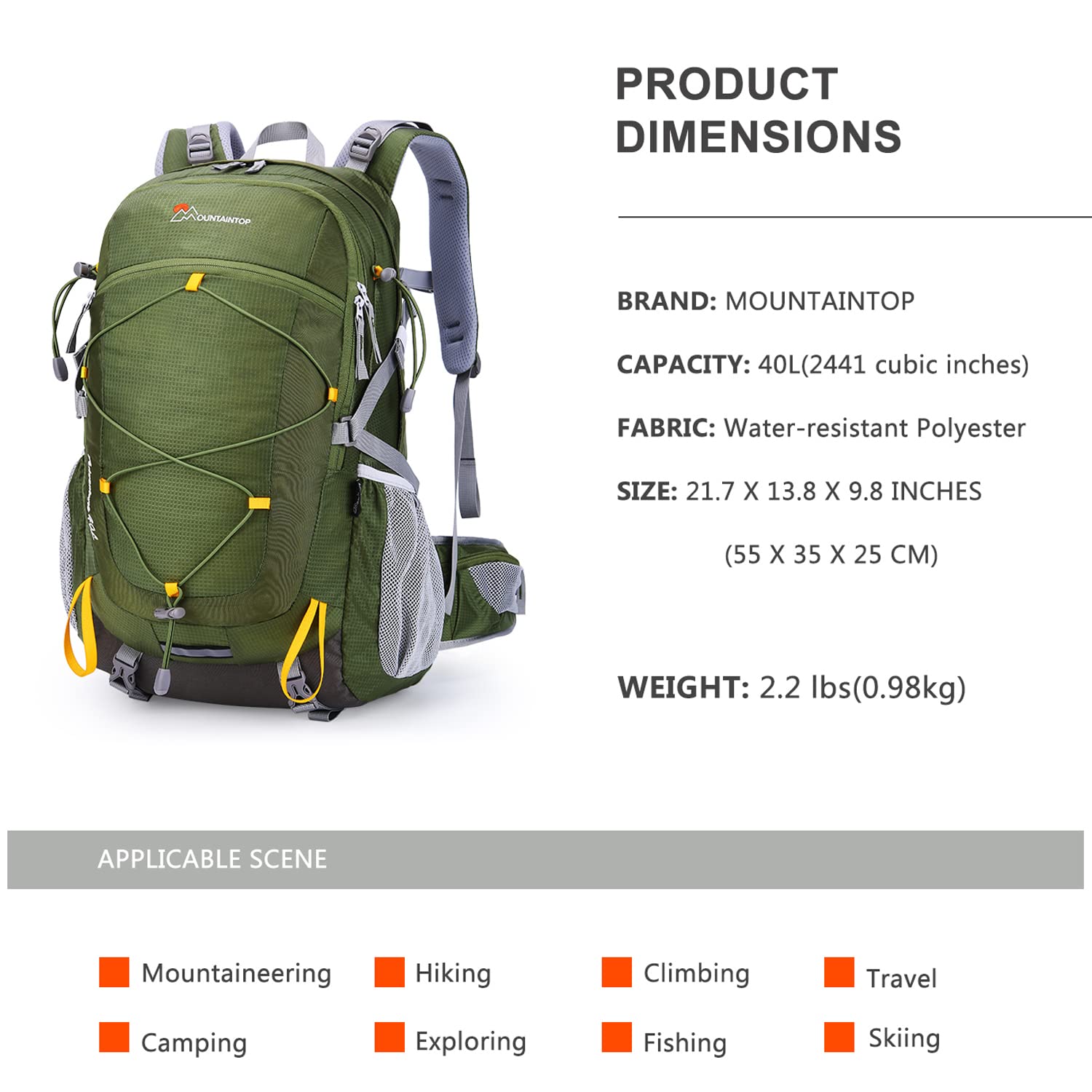 MOUNTAINTOP Waterproof 40L Hiking Backpack – Outdoor Adventure Ready