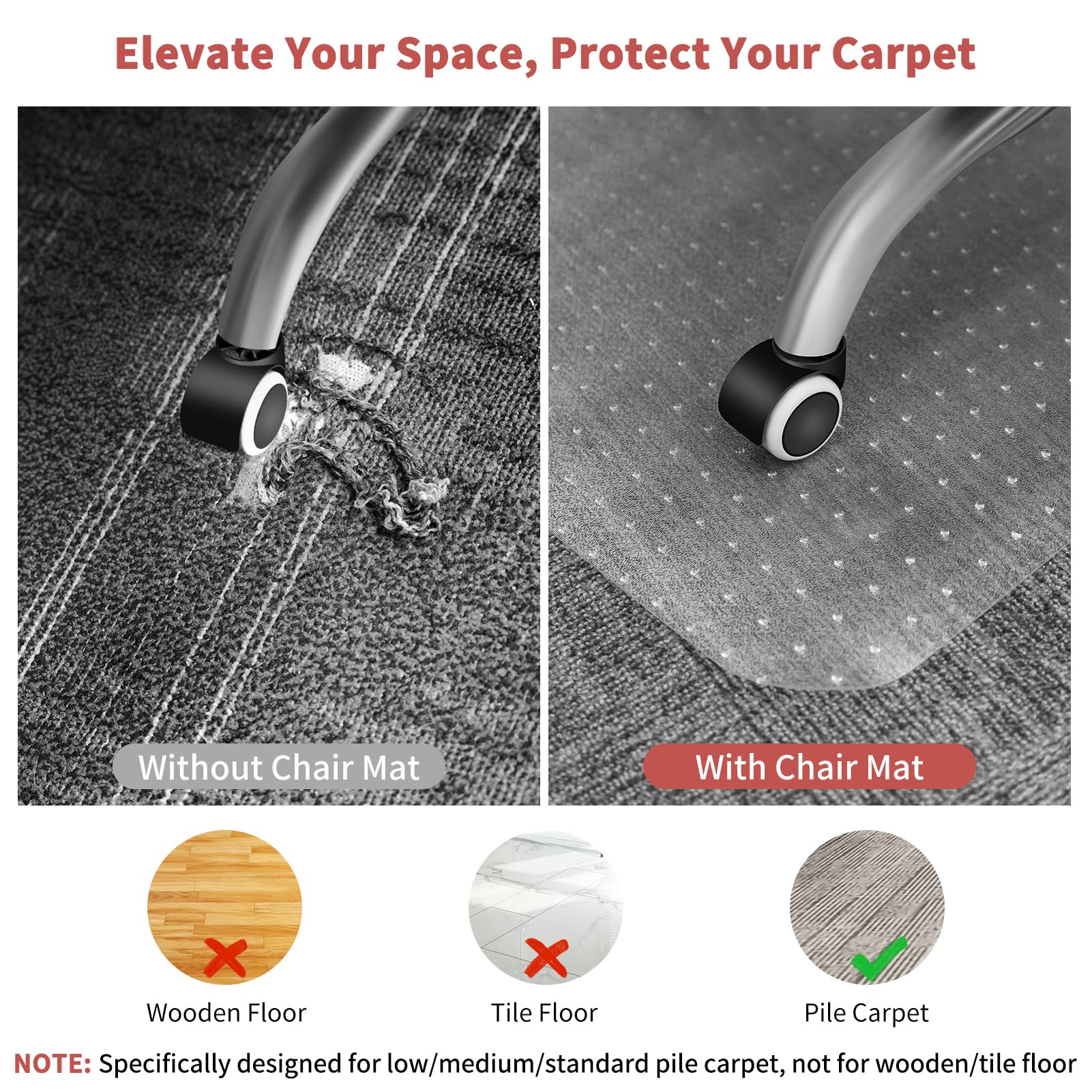 - Fits Various Carpet Types: Ideal for low to medium pile carpets, with dimensions of 90cm x 120cm (36'' x 47''), fitting under most desks.