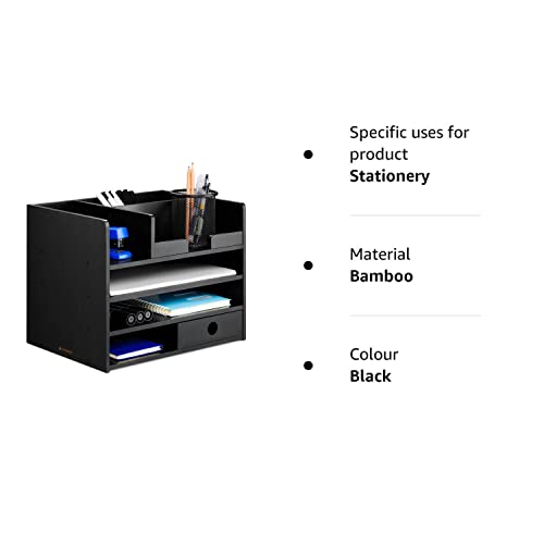 - Complete Set: The package includes 1 desktop organizer made from black bamboo, measuring 33 x 24 x 26 cm (12.9 x 9.4 x 10.2 inches). It comes with screws for easy self-assembly.