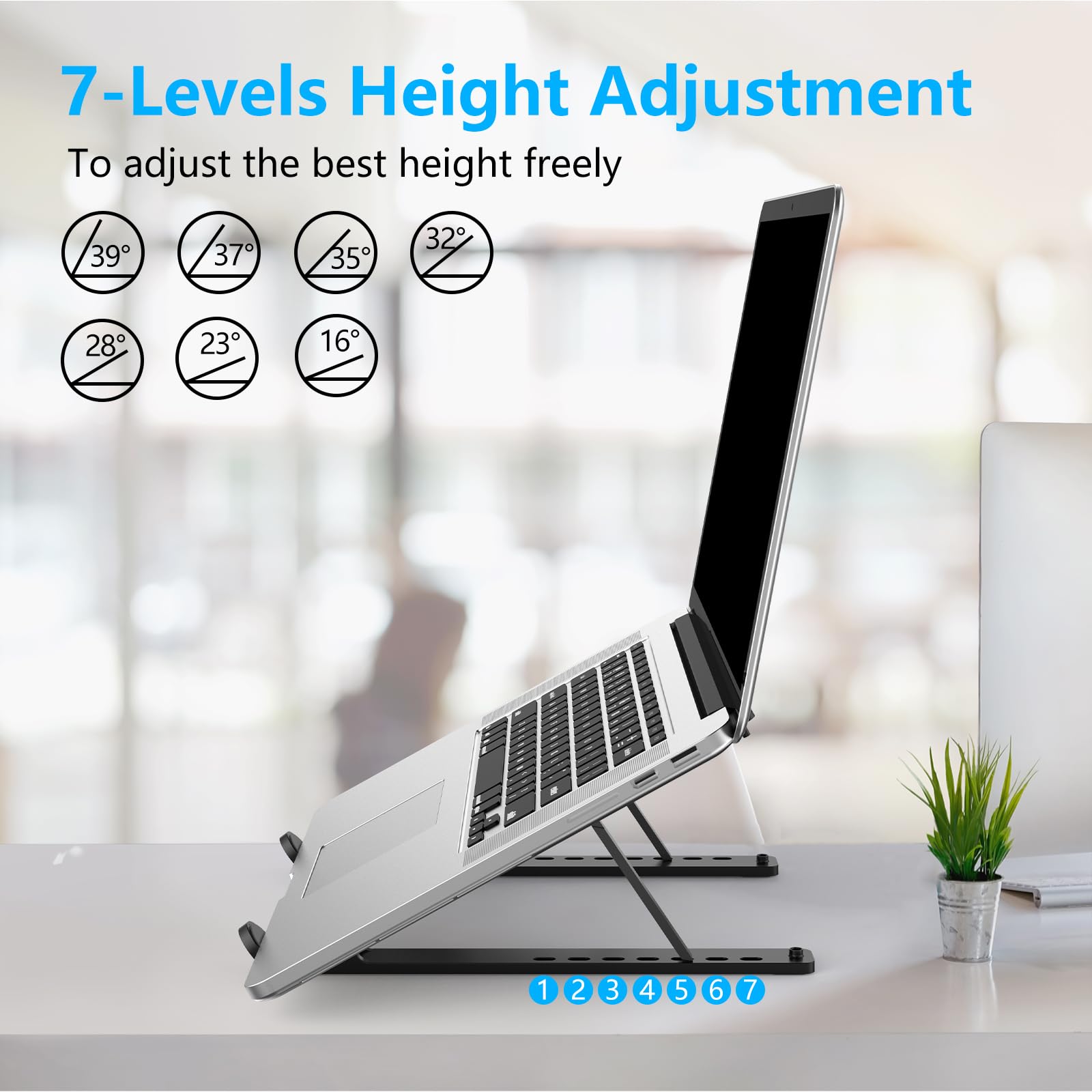- Adjustable & Ergonomic: Elevates your laptop from 3.15” to 5.79” with 7 height levels, ensuring an eye-level view that reduces neck and back fatigue. This ergonomic design improves posture and provides comfort for long working sessions.