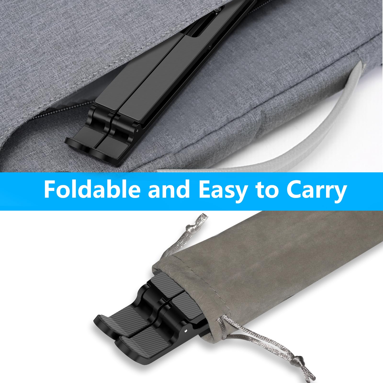 - Portable & Foldable: Weighing only 0.48 pounds, this stand is highly portable and folds down to a compact size of 9.52” x 1.8” x 0.9”. It includes a durable sleeve bag, making it easy to carry for business trips or travel.
