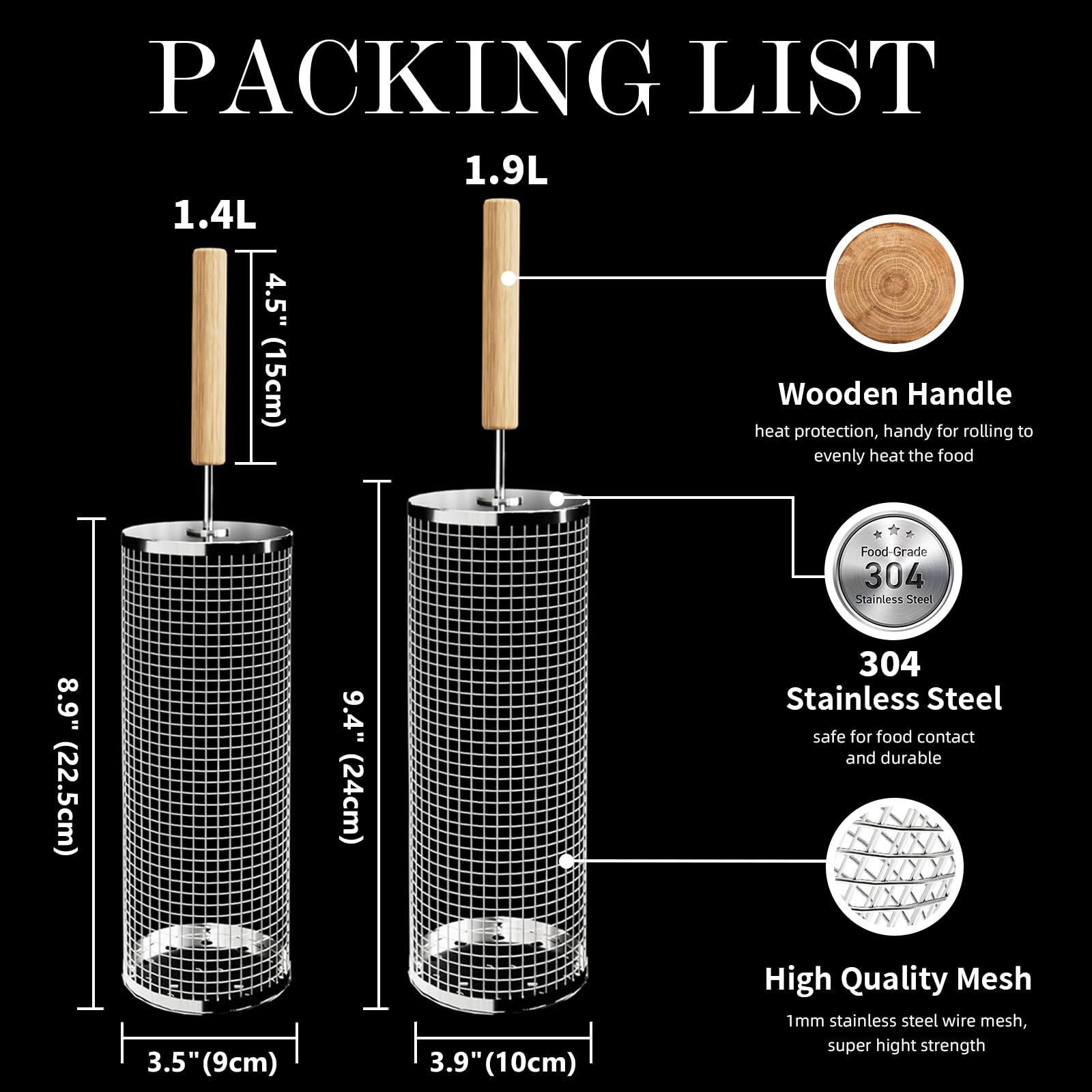 - Nesting Grill Baskets (2PCS) | Removable Wooden Handle | 304 Stainless Steel -