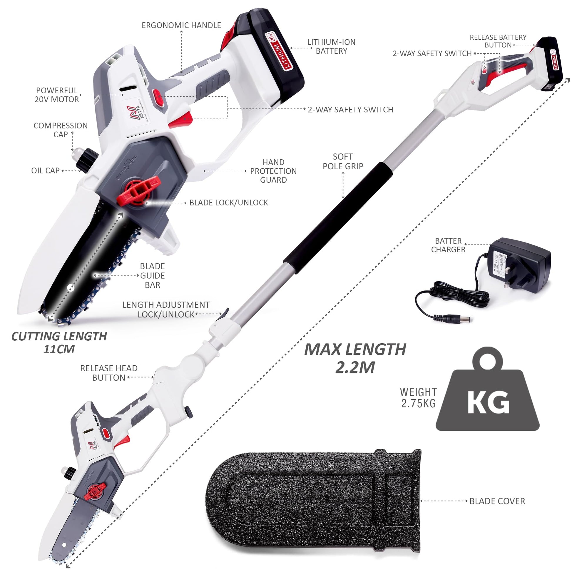 - NETTA Cordless 2-in-1 Pole & Handheld Garden Chainsaw | 20V MAX | Light-Weight | Battery & Charger Included -