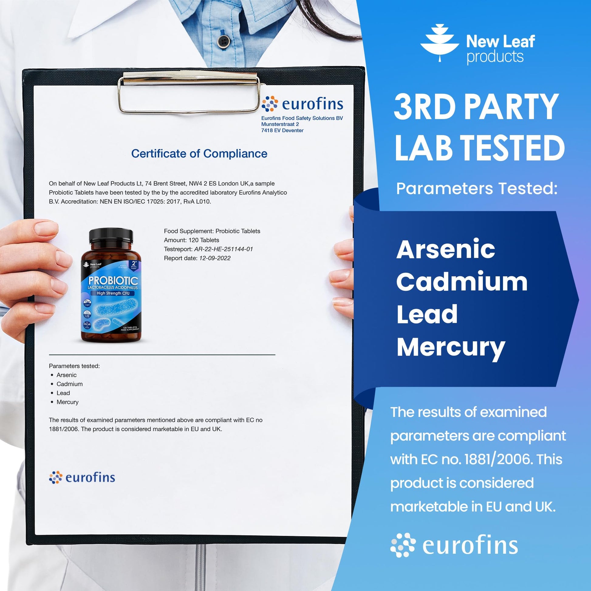 - Third-Party Lab Tested: To ensure quality and safety, each batch of probiotics is rigorously tested by accredited third-party labs for heavy metals and other impurities.