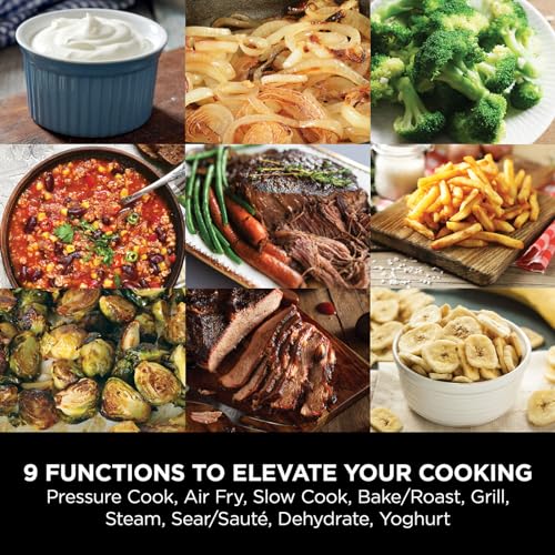 - 9 Cooking Functions: Enjoy versatility with Pressure Cook, Air Fry, Slow Cook, Steam, Bake/Roast, Sear/Sauté, Grill, Yoghurt, and Dehydrate settings. Perfect for a wide range of recipes, from stews to crispy fried treats.