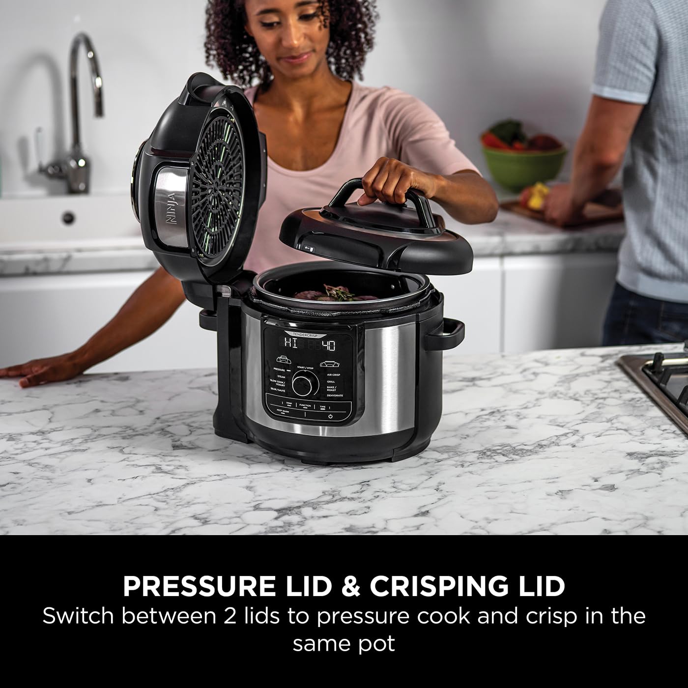 - TenderCrisp Technology: Pressure cook your food and then switch to the Crisping Lid to finish with a crispy, golden exterior. Ideal for dishes like roast chicken, crispy fries, and steaks.