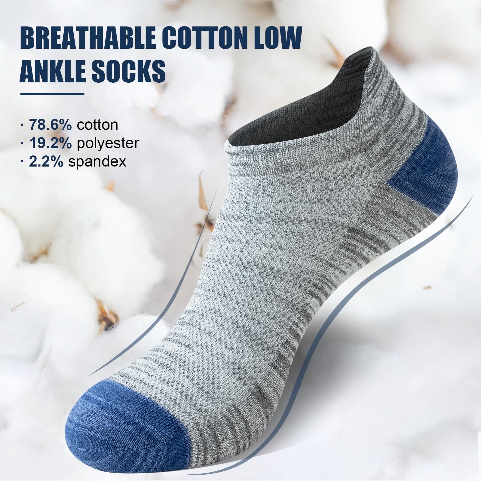 - Premium Cotton Blend: Made with 78.6% cotton, these socks offer superior softness and moisture-wicking properties, keeping feet dry and odor-free throughout the day.