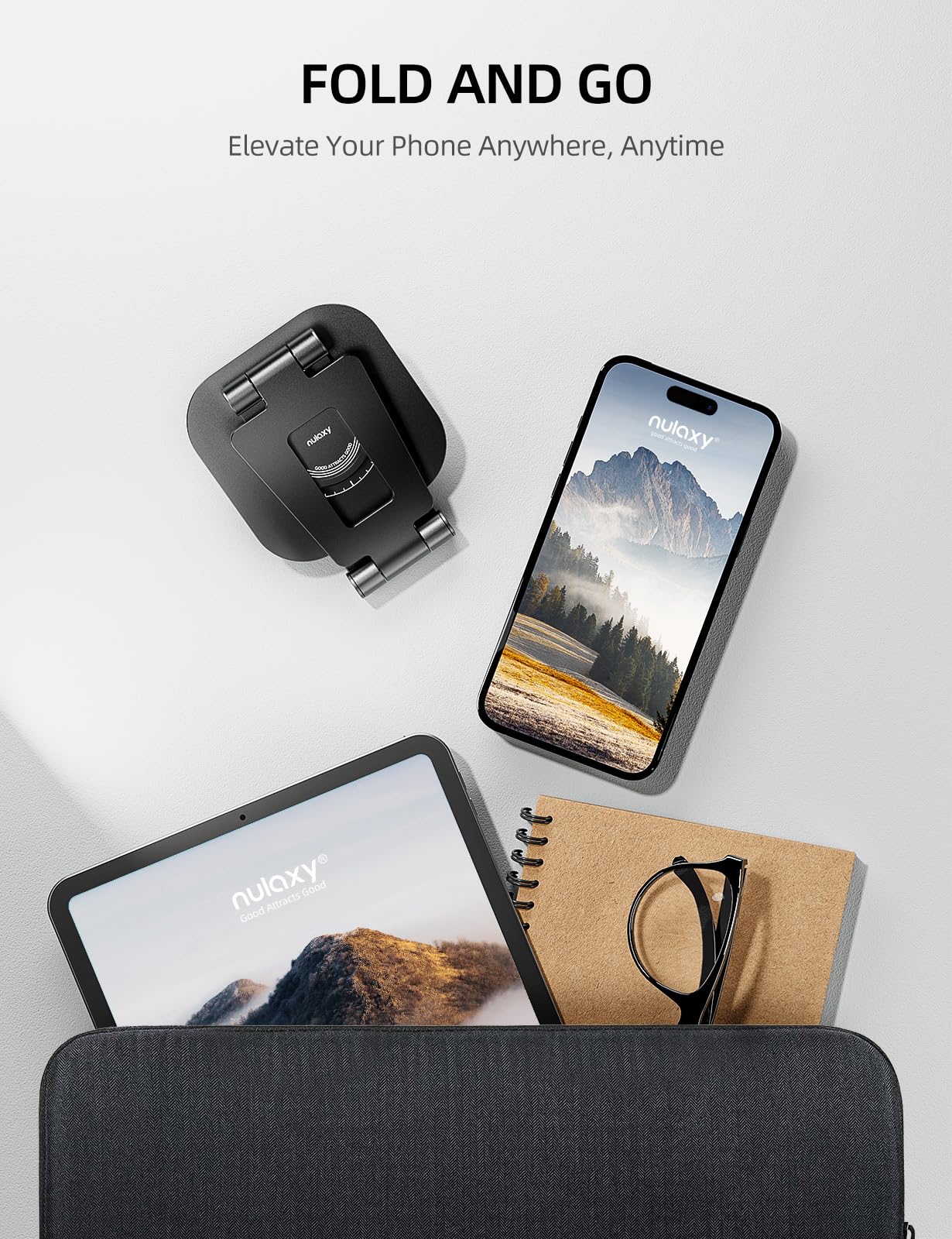 - NULAXY 360 Rotating Phone Stand | Fully Adjustable Foldable Desktop Mobile Phone Holder -