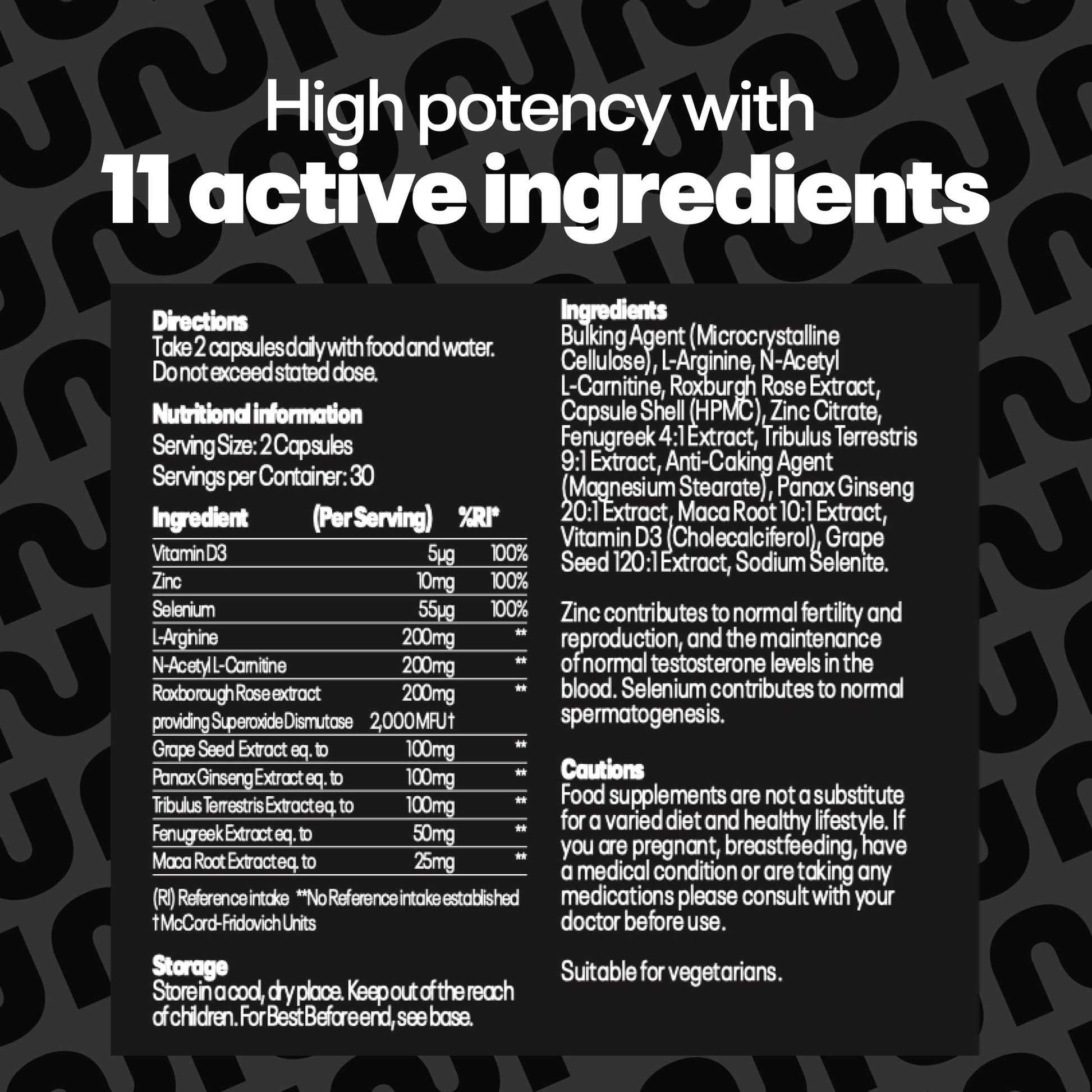 - Includes a blend of powerful natural ingredients to support T-levels, fertility, and cognitive function.