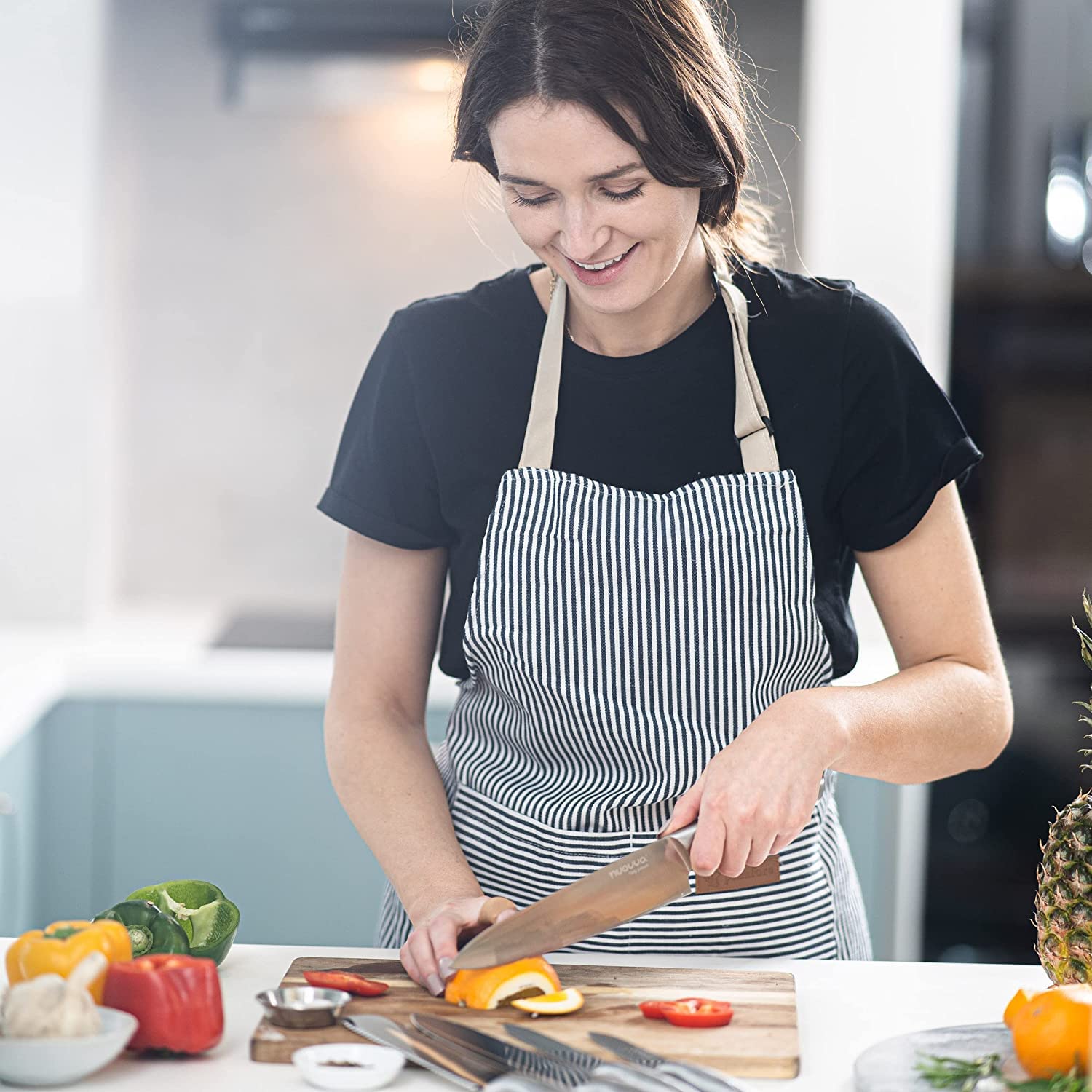 - Variety Set – Includes an 8” chef knife, 8” serrated bread knife, 8” slicer knife, 4.5” utility knife, and 3.5” paring knife for a complete cutting solution.