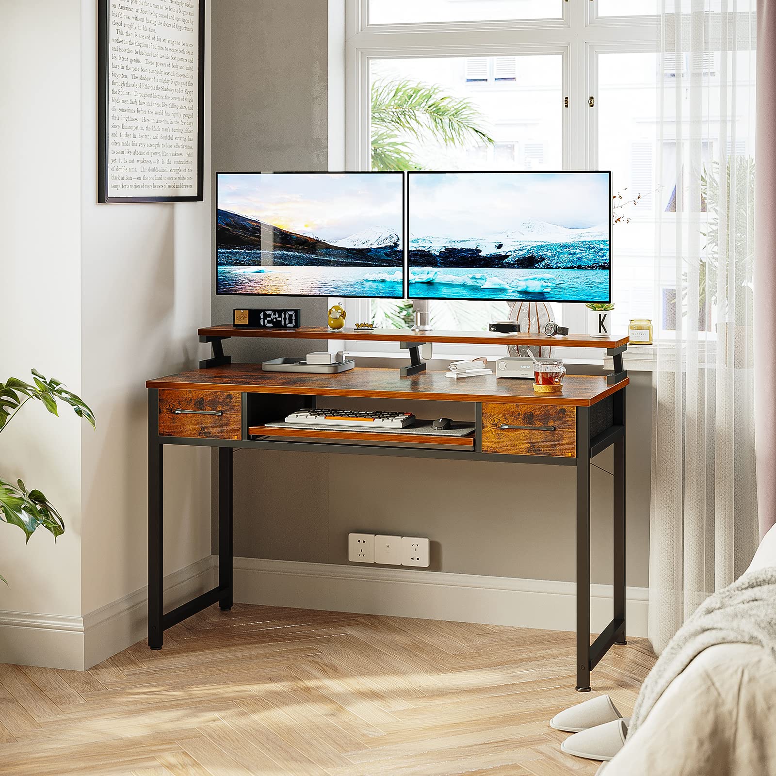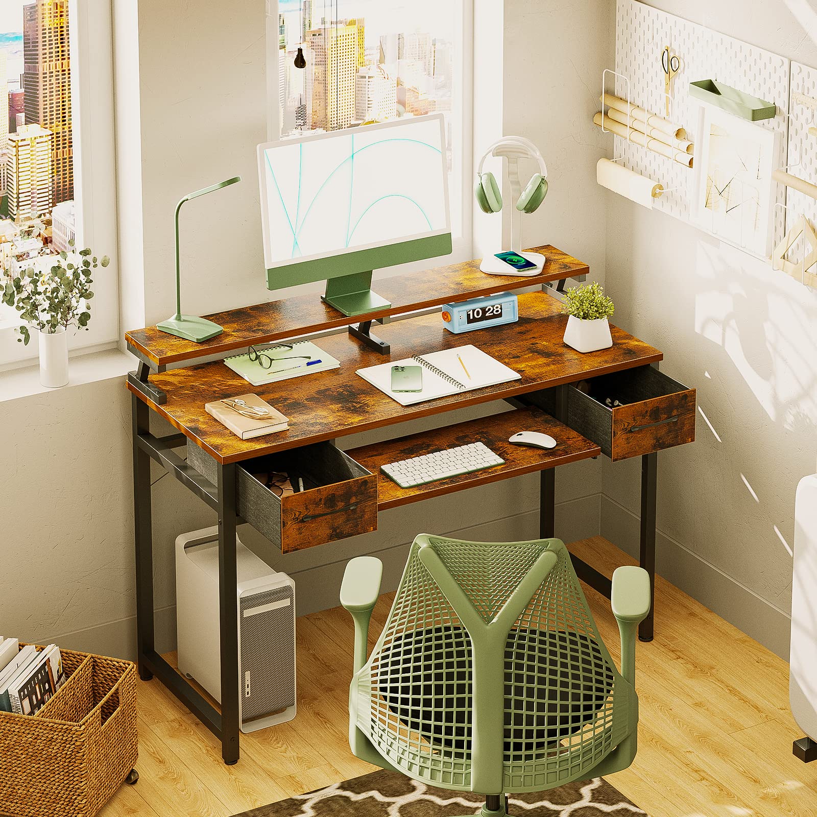 - ODK Computer Desk with Drawers | 48 Inch Office Desk with Keyboard Tray -