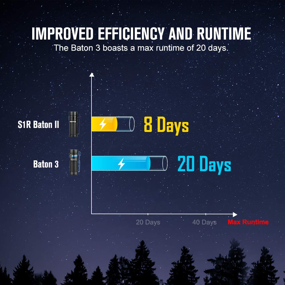 - Ultra-Bright Performance: Upgraded from the S1R Baton II, the Baton 3 delivers up to 1,200 lumens with a 166-meter throw, offering 20% more brightness and 14% more range than its predecessor.