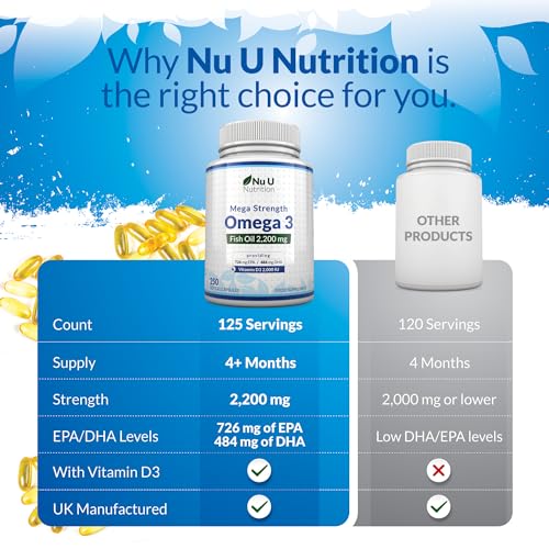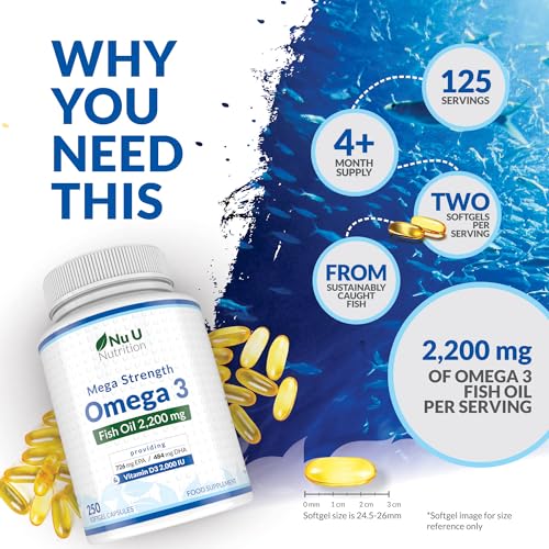 - Omega 3 | 250 Softgel Capsules | Sustainably Sourced - High Strength 1100mg Fish Oil per Capsule - Nu U Nutrition
