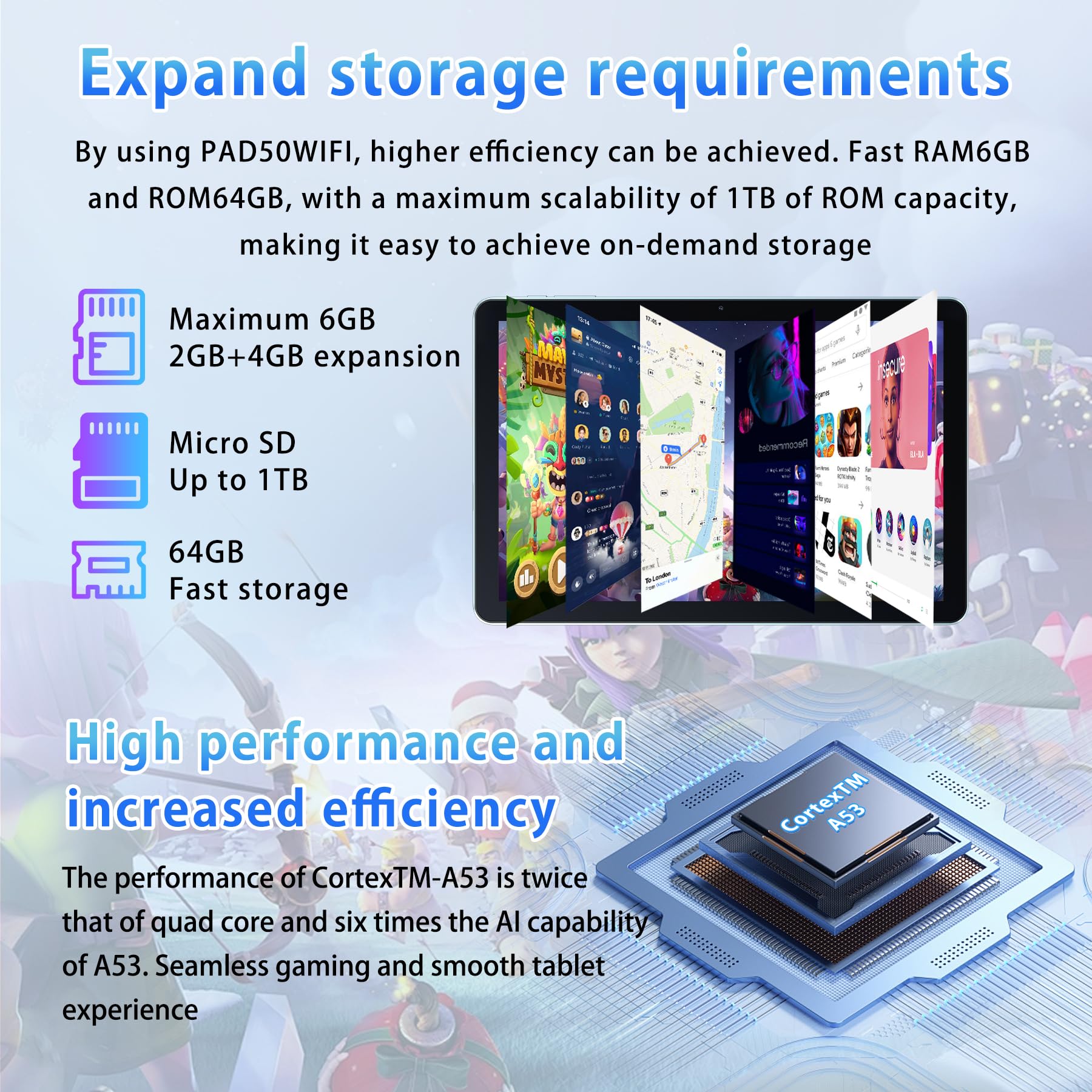 - Ample Storage and Speed: Equipped with 6GB RAM (expandable with virtual memory), 64GB ROM, and a massive 1TB expandable storage, this tablet ensures you have plenty of space for apps, files, and media.
