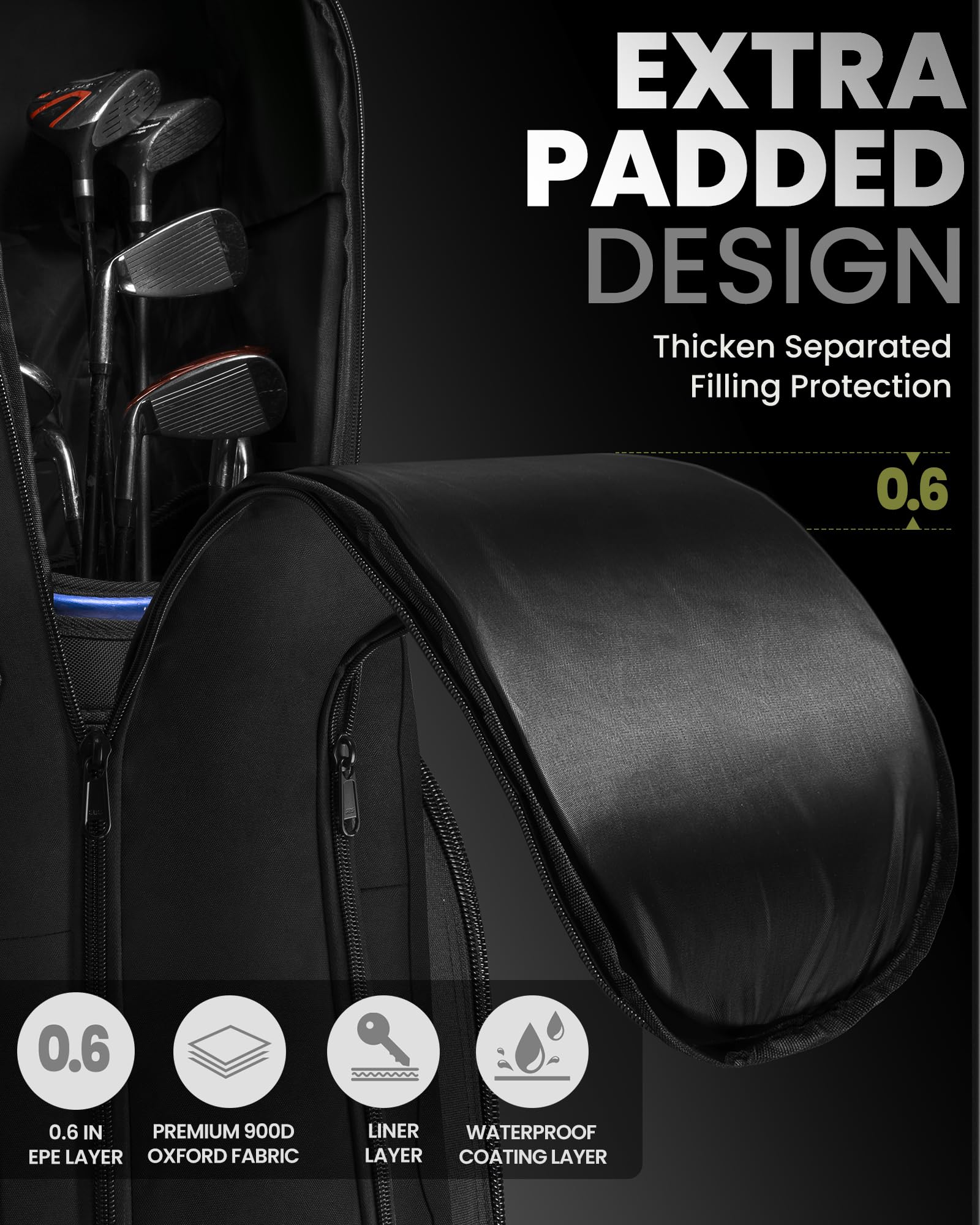 - Extra Protection: Features the OTS system with double-thickened cushion layers and a 900D oxford wear-resistant and waterproof material for ultimate protection of golf clubs.