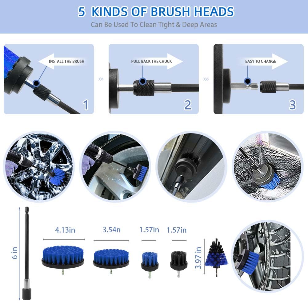 - Multiple Brush Sizes: Five detailing brushes of varying sizes to clean everything from tight crevices to larger areas like tires. The kit also includes wire brushes for heavy-duty cleaning.