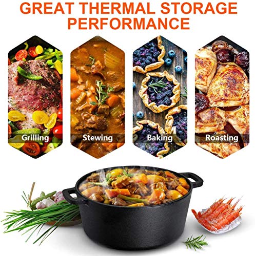 - Pre-Seasoned Cast Iron: The Overmont Dutch oven is seasoned with vegetable oil for a natural, easy-release finish. This seasoning improves over time, making the pot even better with each use.