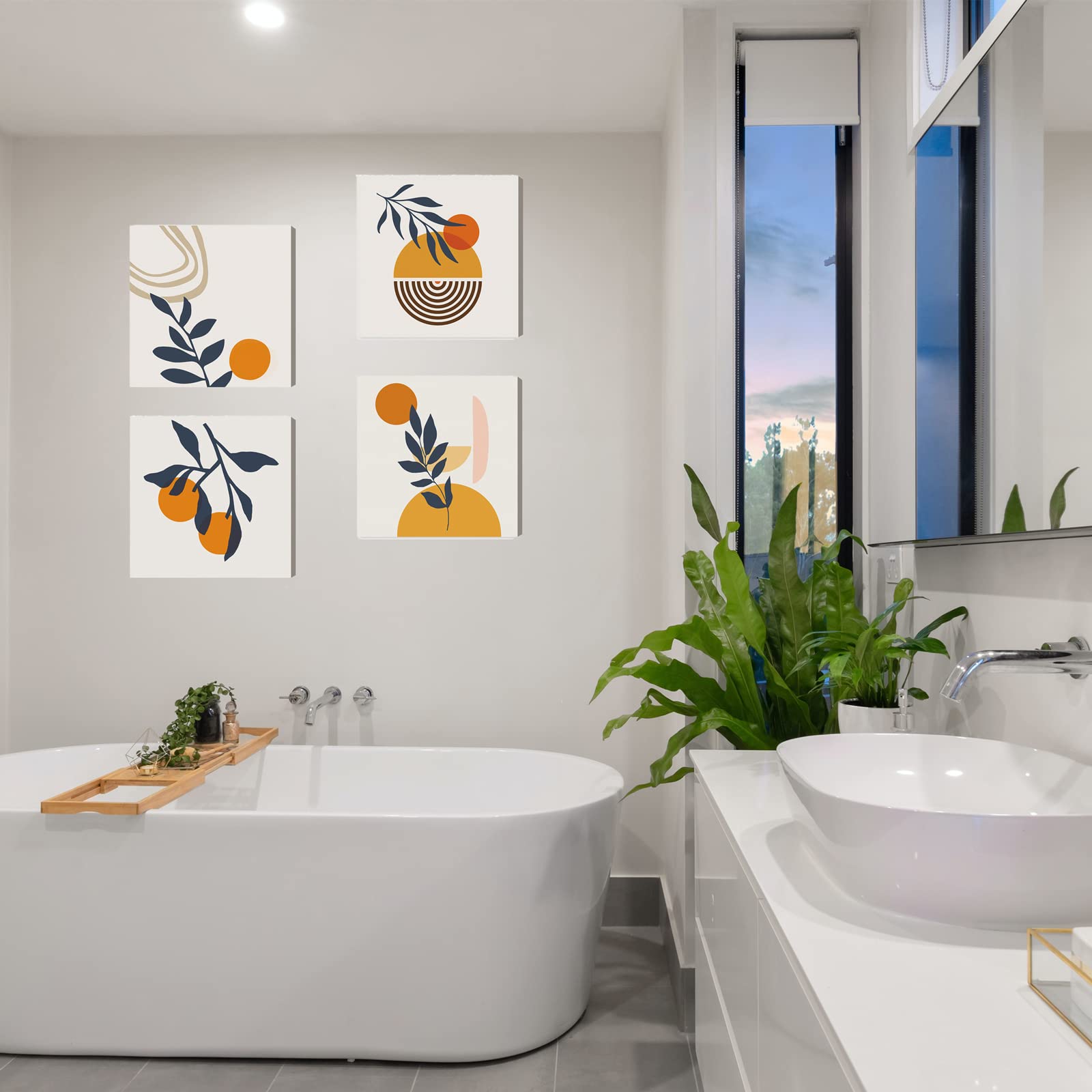 - Abstract Art Design: Set of four panels with a unique boho-inspired orange and green leaf design