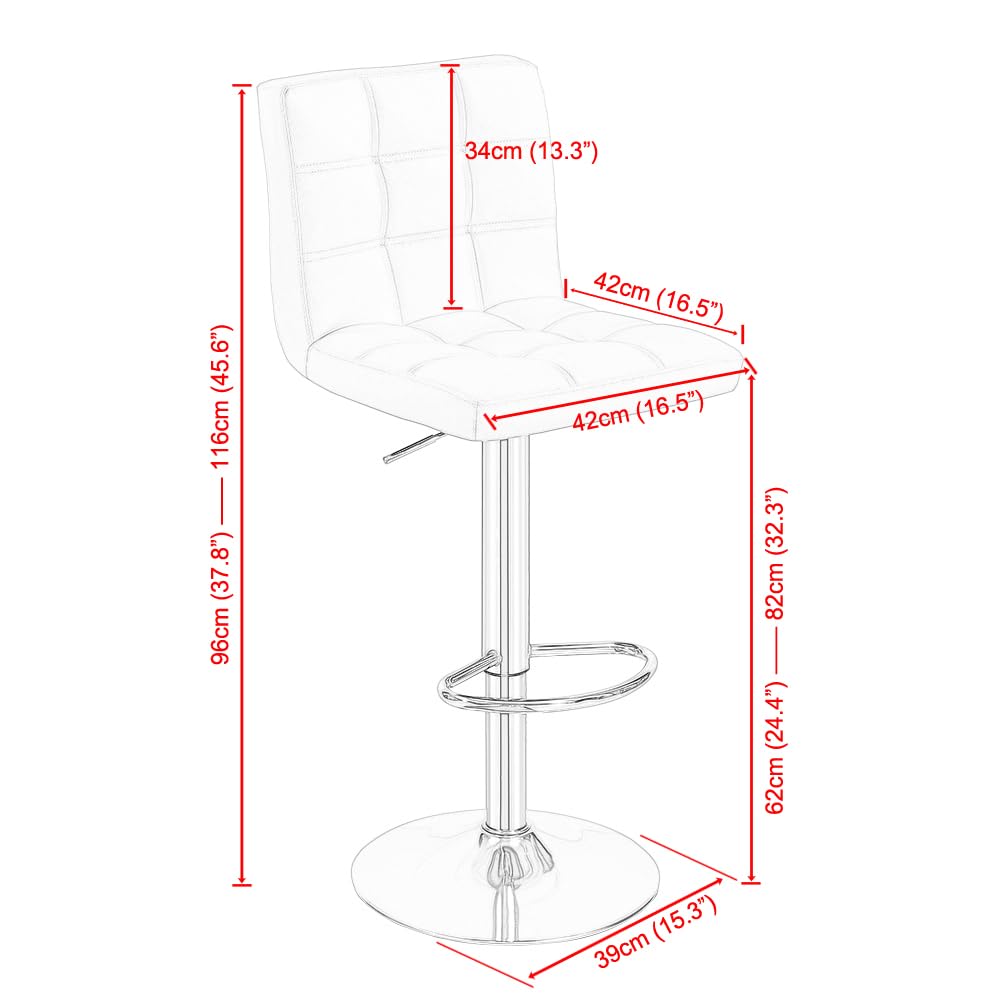 - Adjustable Height: Seat height can be easily adjusted from 62 cm (24.4 inch) to 82 cm (32.3 inch), offering versatility for different counter heights.