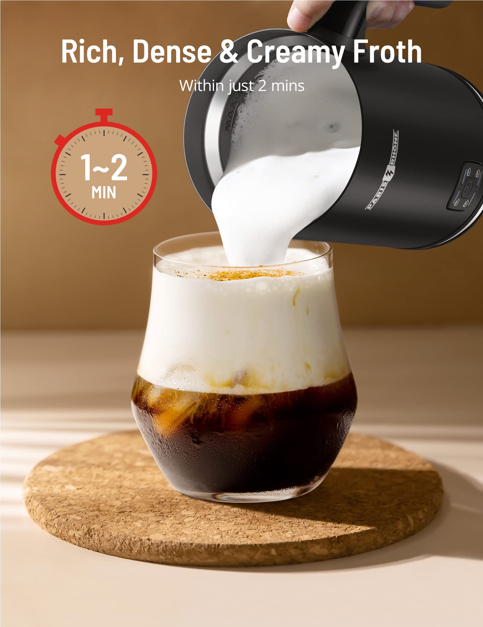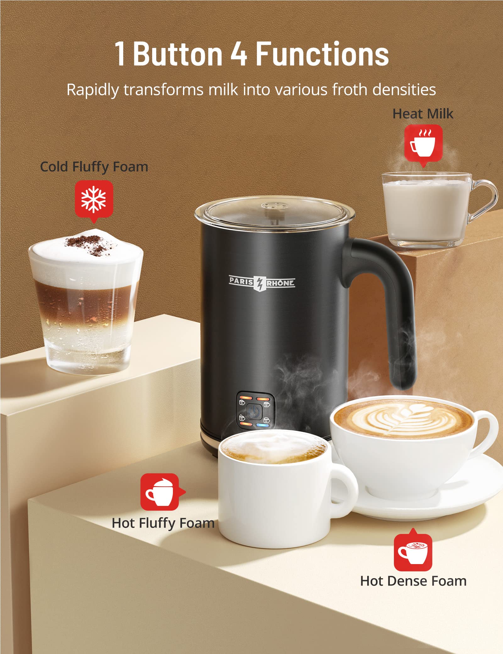 PARIS RHÔNE 4-in-1 Milk Frother – Perfect for Dads Who Love Coffee.