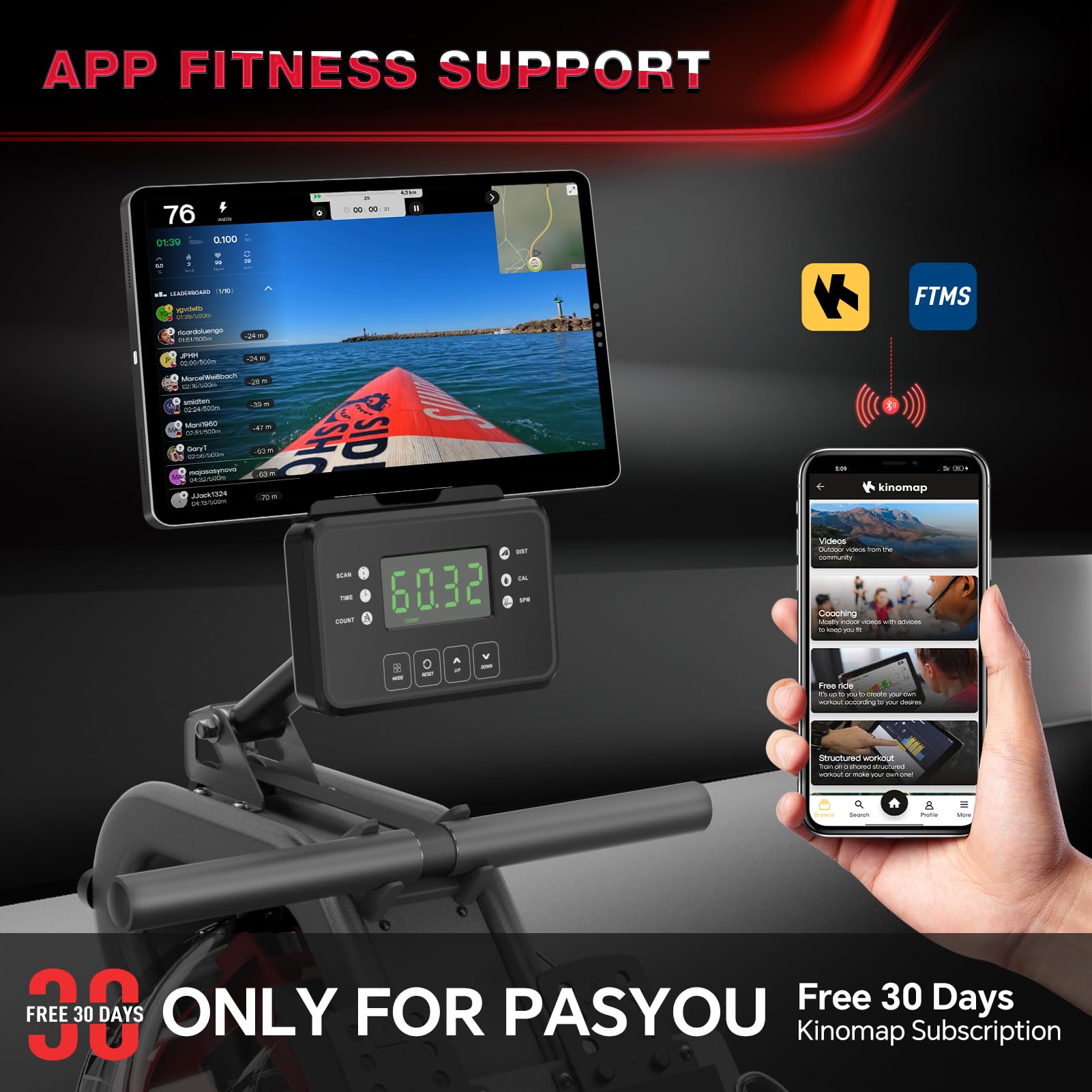 - Special Bonus: Enjoy a 30-day Kinomap membership, providing access to interactive training videos and virtual courses to enhance your rowing experience.