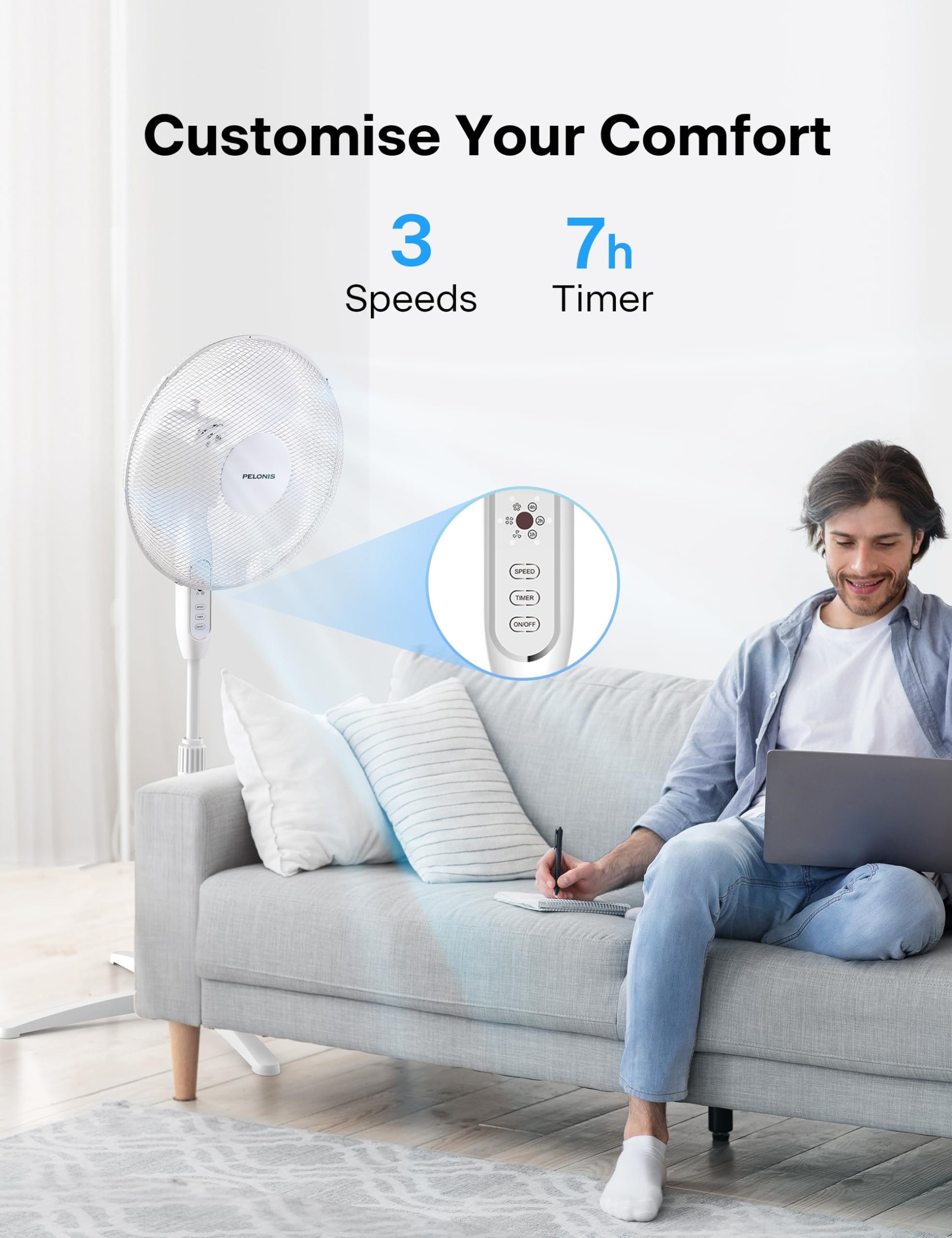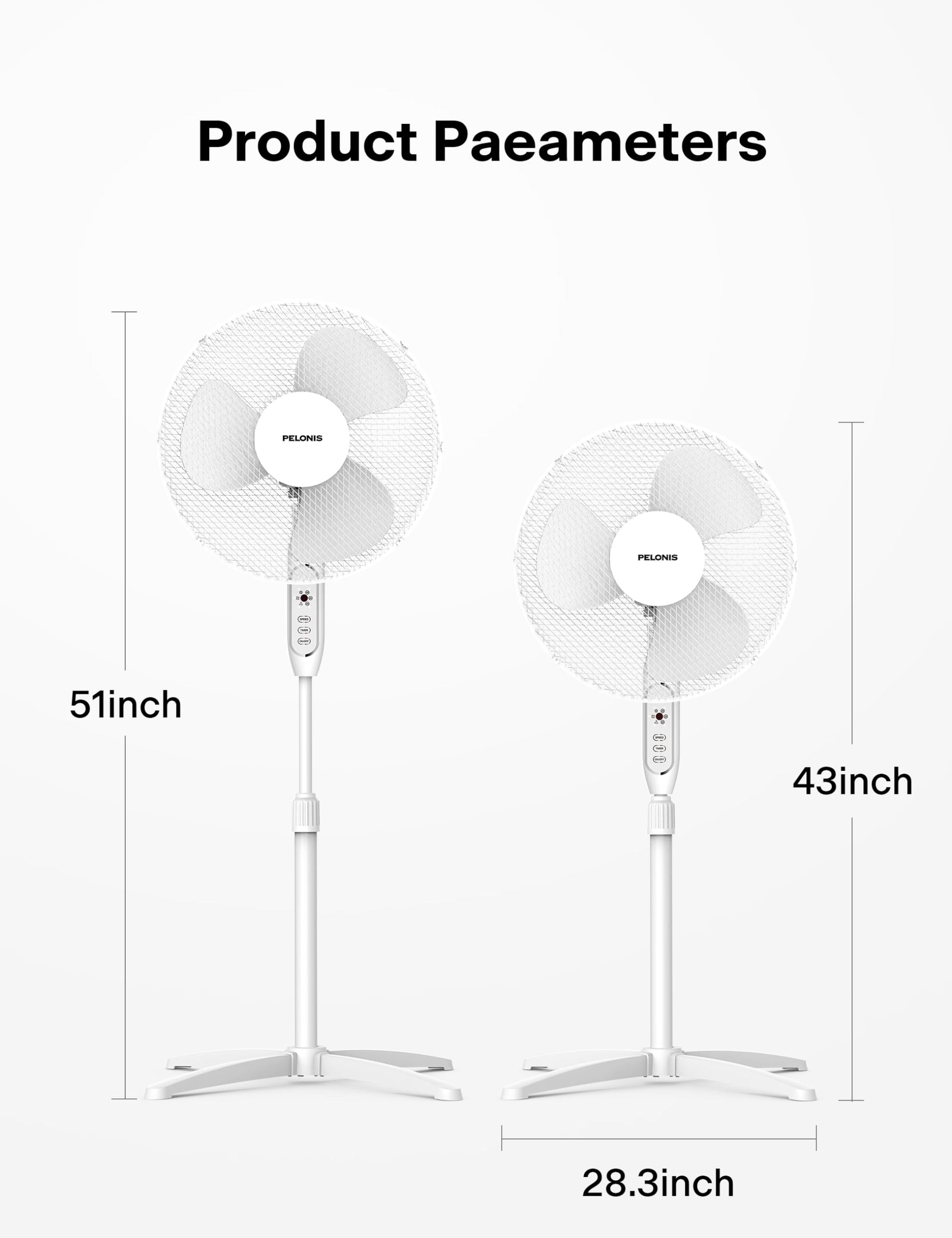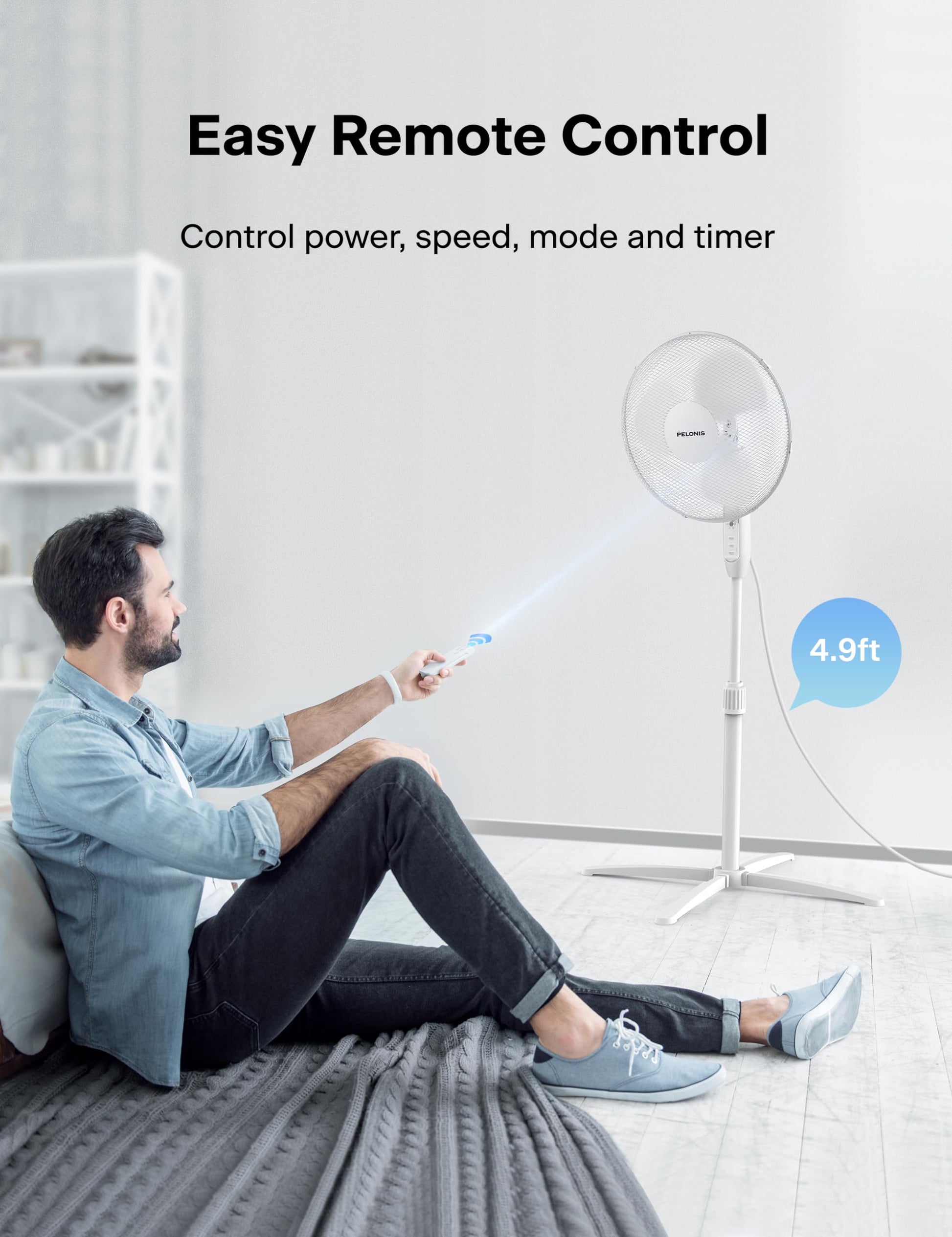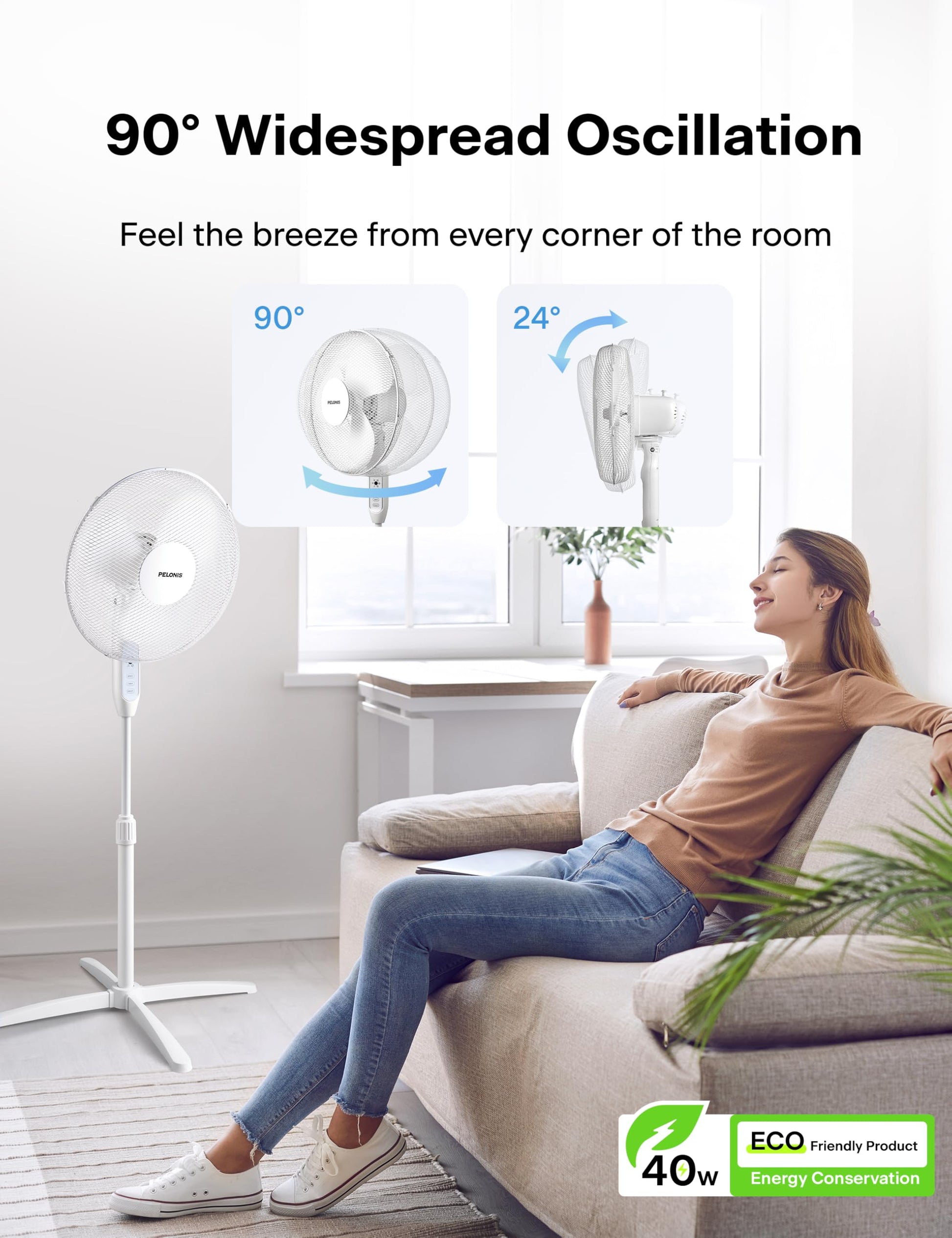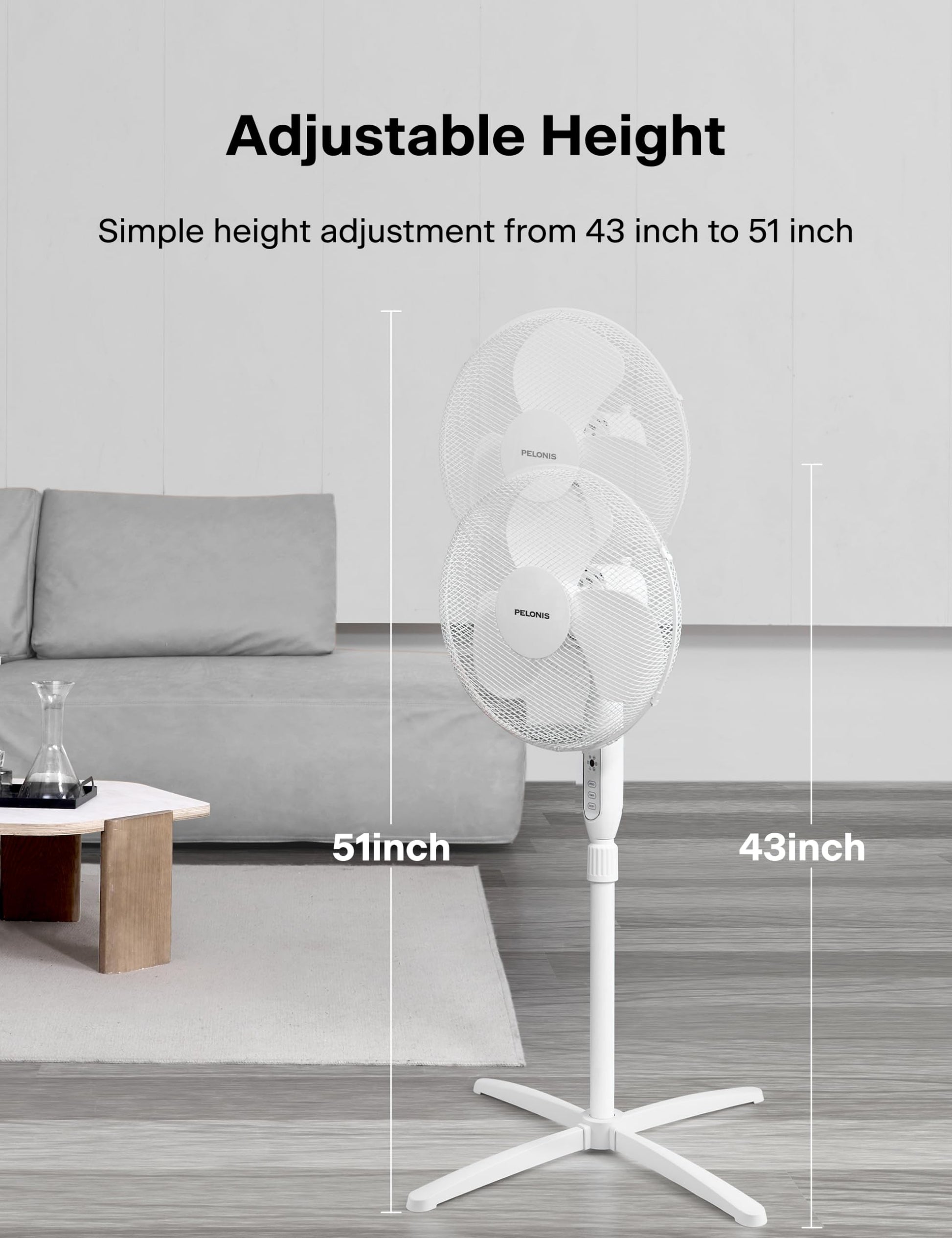Pelonis 16-Inch Pedestal Fan – Powerful Cooling with Customizable Comfort