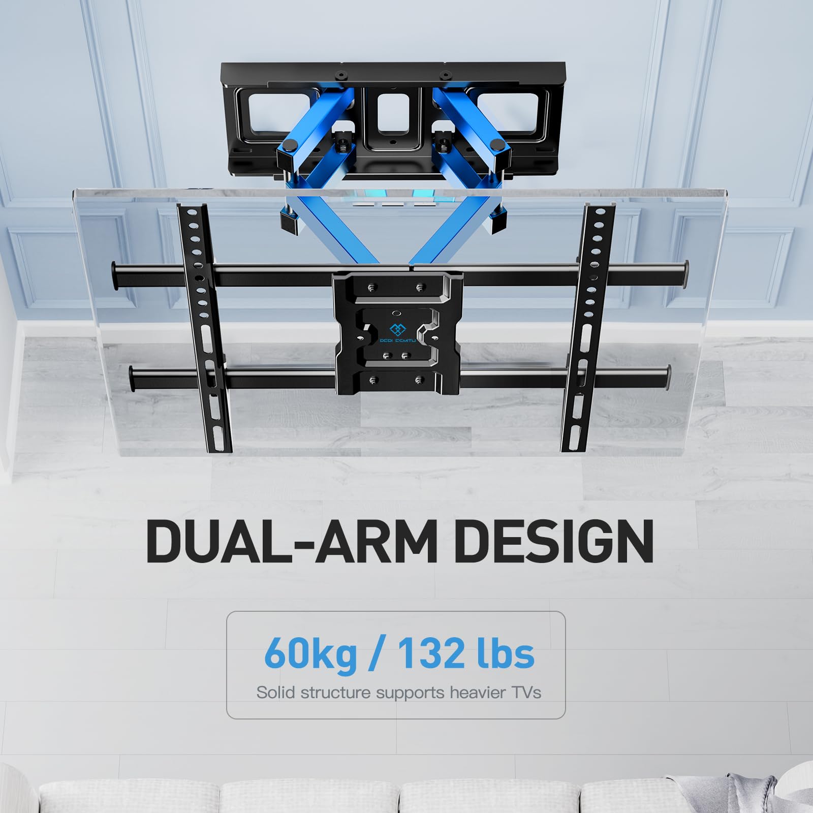 - Space-Saving Design – The dual articulating arms retract to just 76mm from the wall and extend up to 376mm, keeping your space neat and organized.