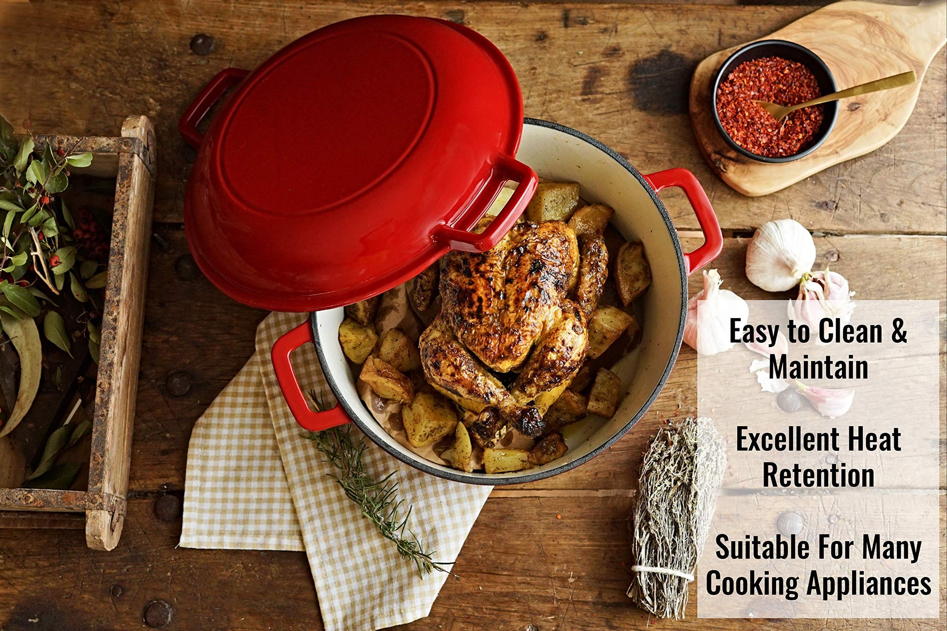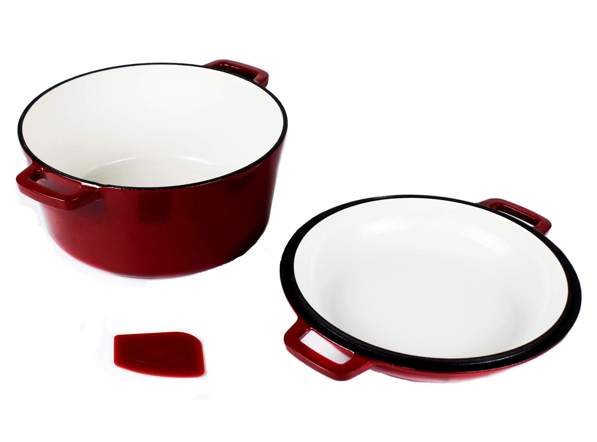 - Pinnacle Cookware | 4.73 Litre / 5 Quart Enameled Red Cast Iron Double Dutch Oven -
