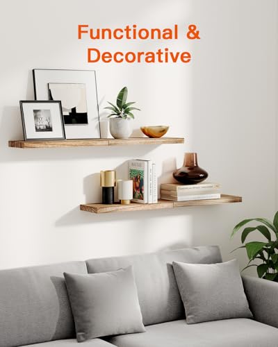 - 100% Paulownia Wood: Crafted from sustainable, 5-year-old Paulownia trees, these floating shelves feature a natural wood texture that suits any room decor.