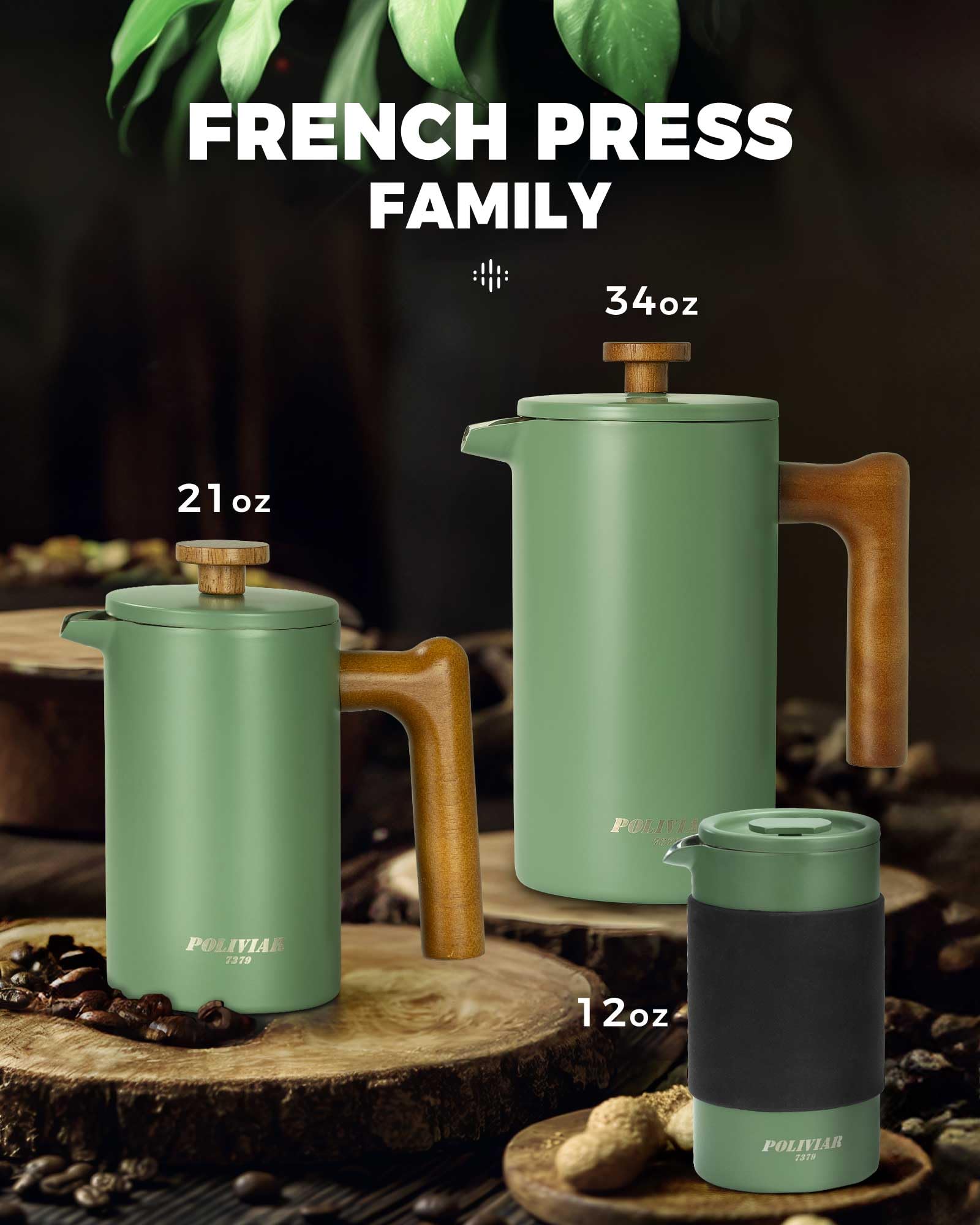 Poliviar 7379 French Press Coffee Maker – Stainless Steel Double-Wall Cafetiere