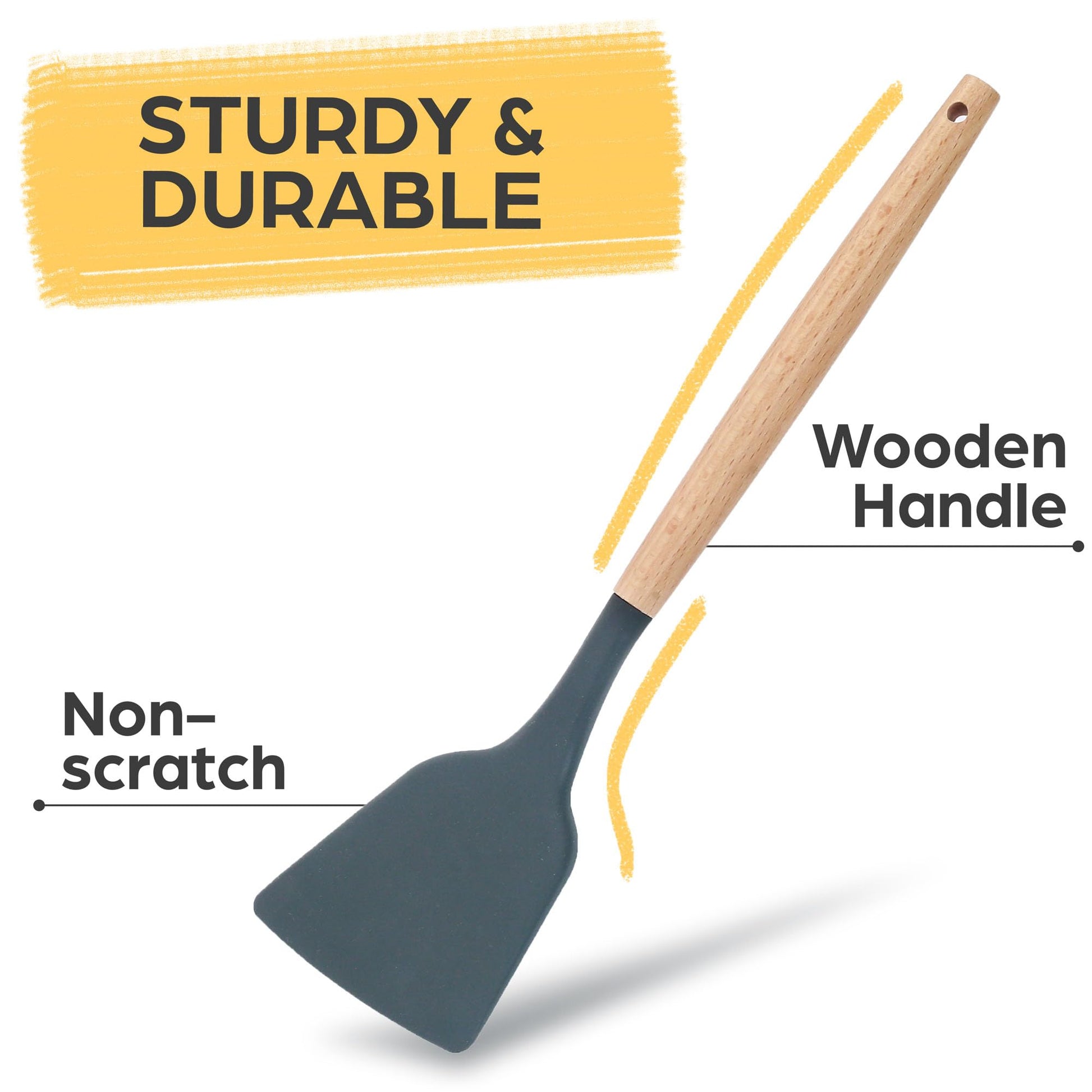 - Stylish and Practical: The grey silicone and wooden handles complement any kitchen style, making it a great gift idea.