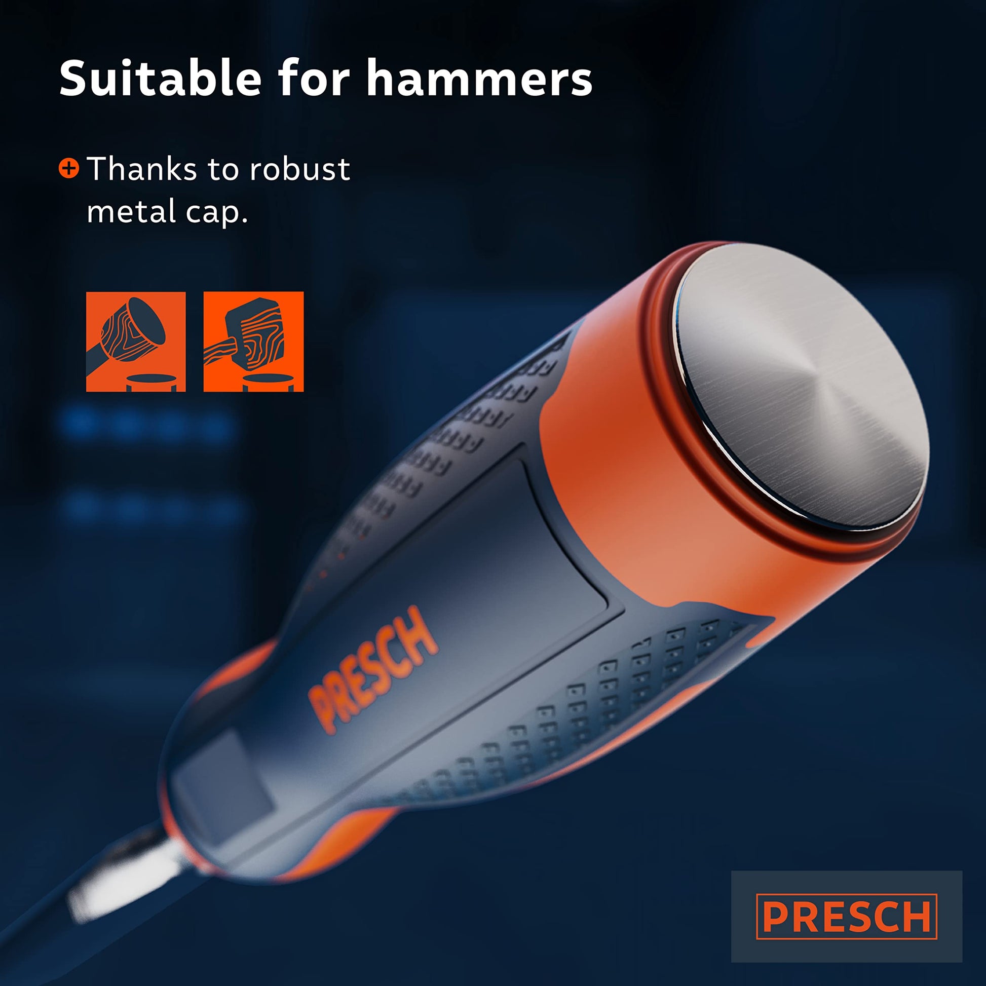 - Impact Protection: The metal impact cap safeguards the handle when using a hammer, increasing the tool’s lifespan.