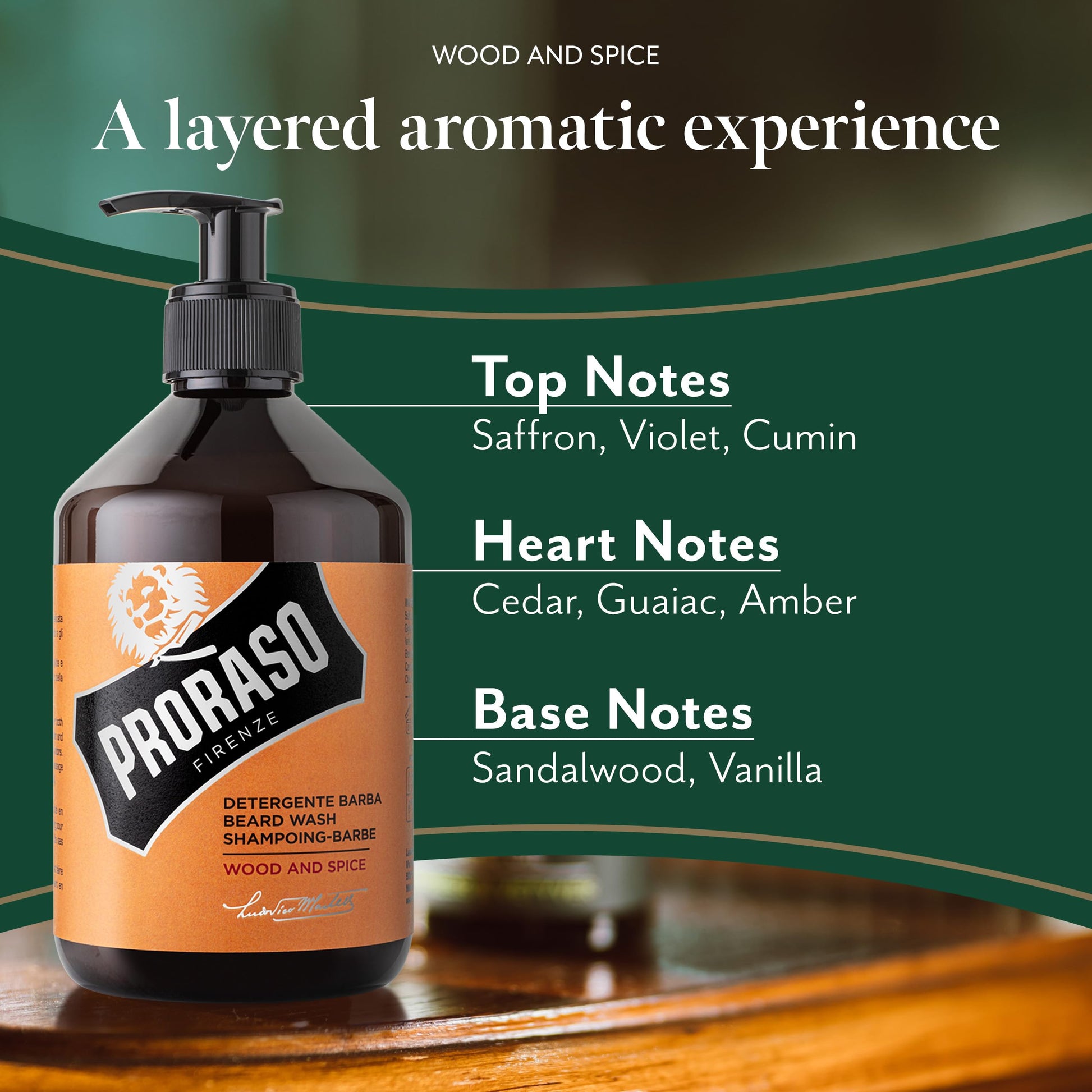 - Proraso Beard Wash Wood & Spice | 500ml | Scented Beard Shampoo -