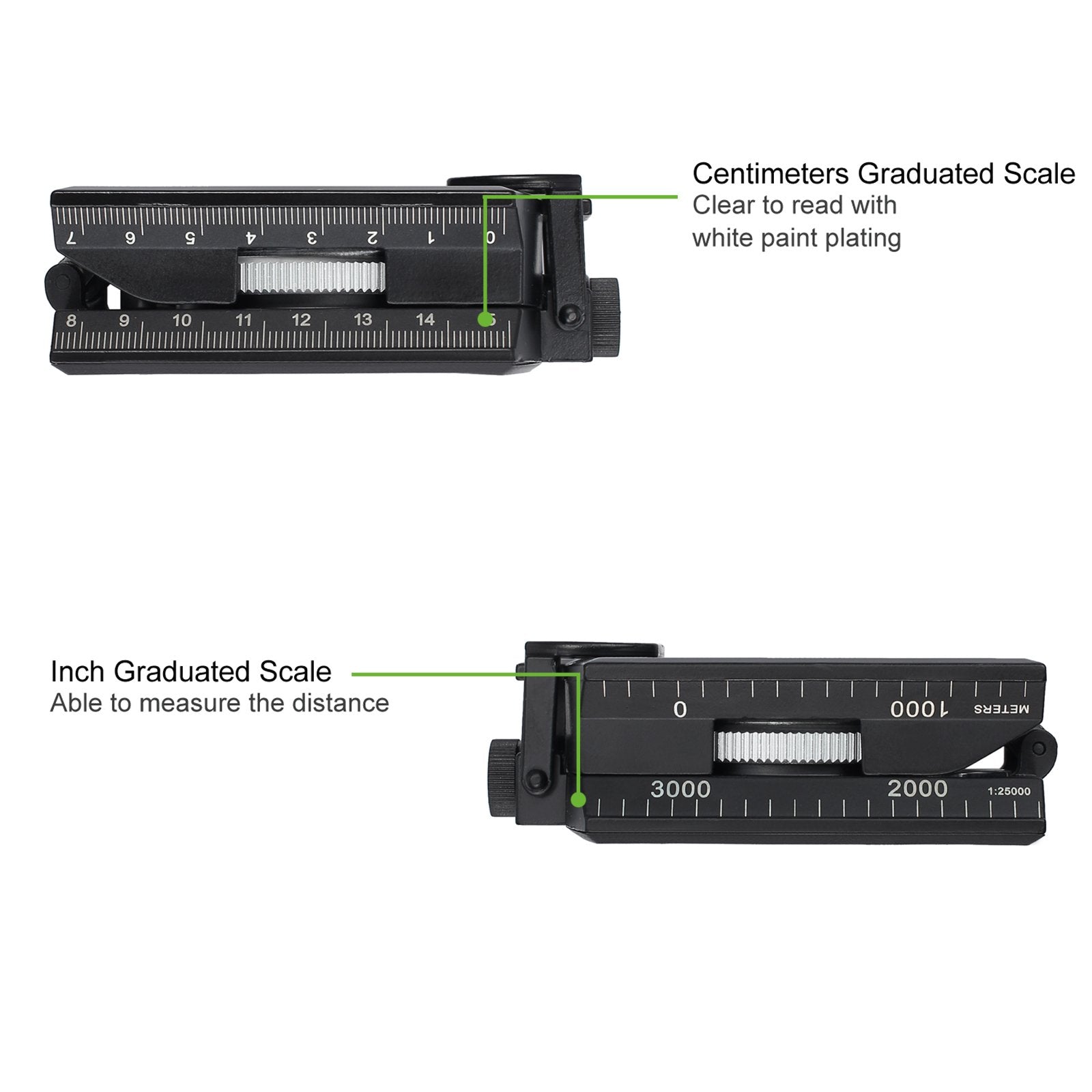 - Easy-to-read display – Sighting window with sighting line, foldable metal lid, adjustable prism lens, and ruler units for measurements in inches and centimeters.