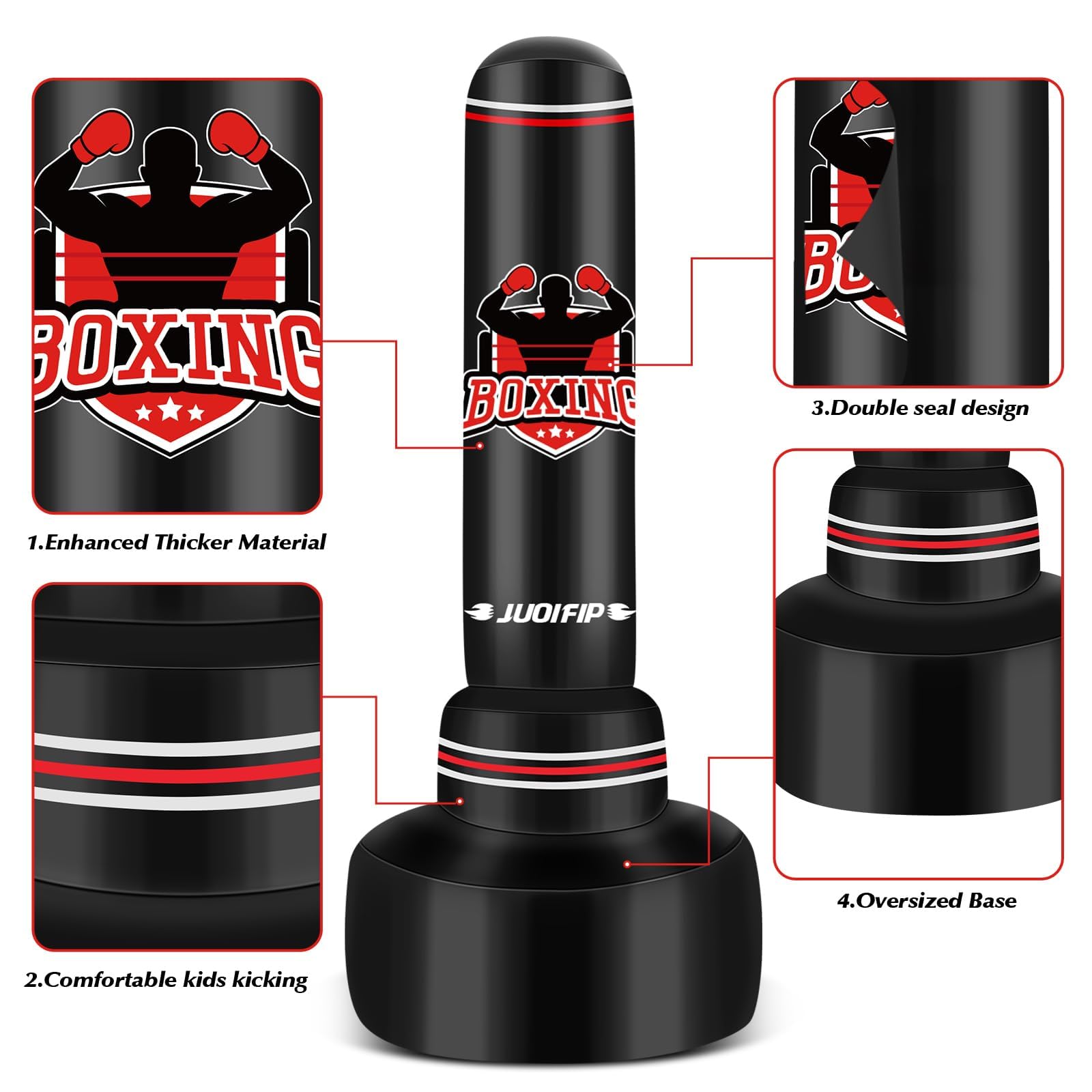 - Complete Boxing Set – Includes a freestanding punching bag, a pair of boxing gloves, and an electric air pump for easy setup.