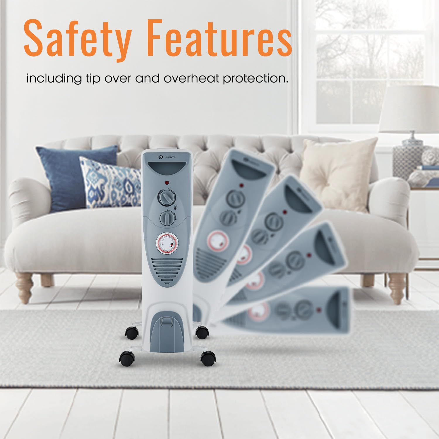 - PureMate Oil Filled Radiator | Portable Electric Heater | Adjustable Temperature and Thermostat -