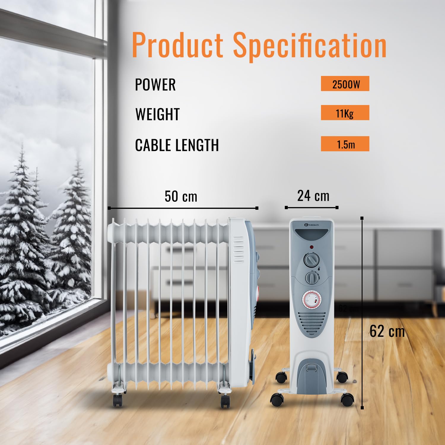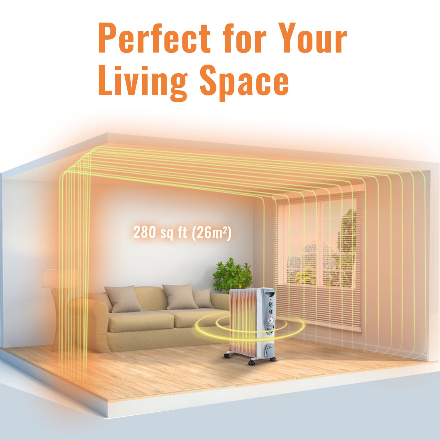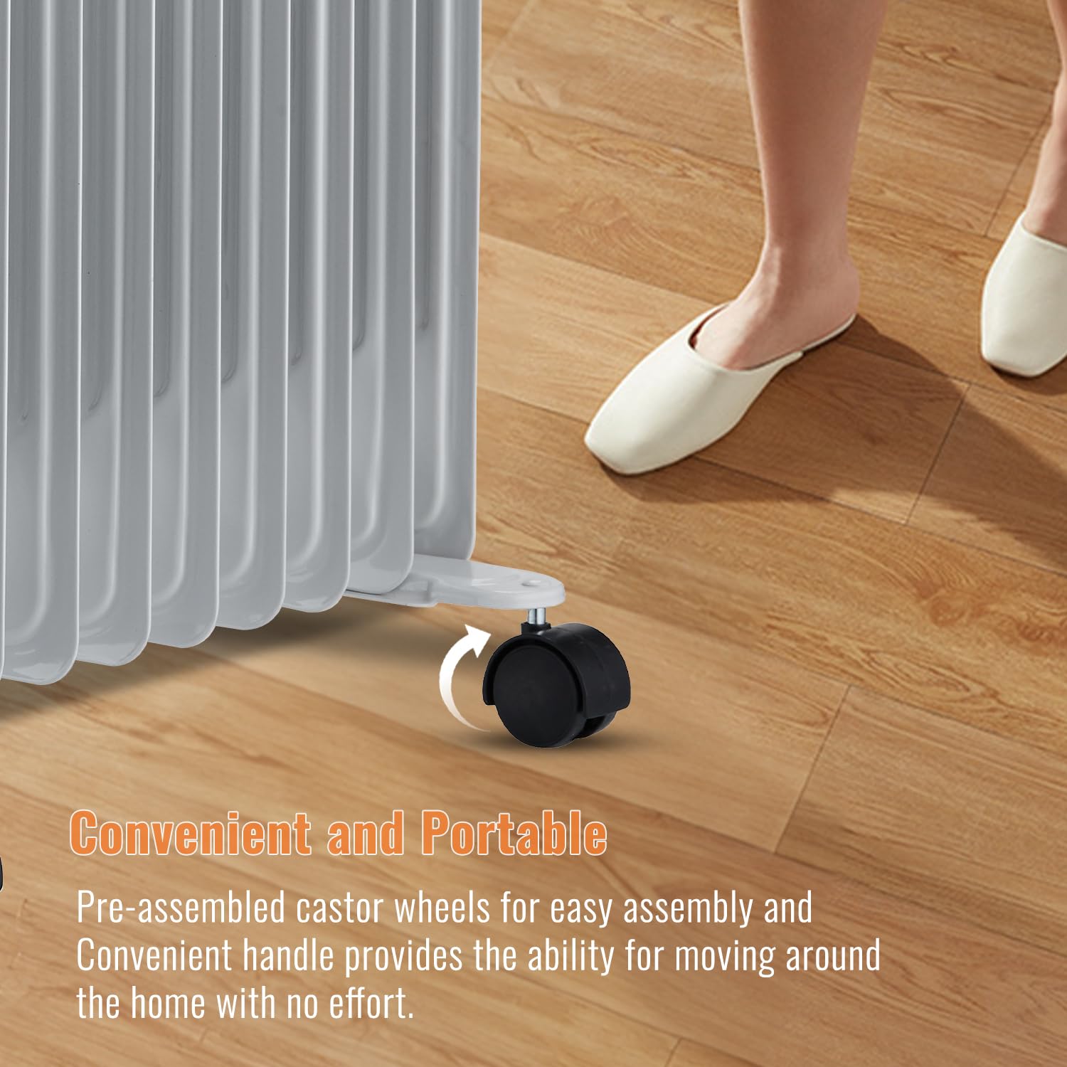 - Powerful 2500W Heating – The 11 oil-filled fins provide rapid and efficient heating for a comfortable indoor environment.