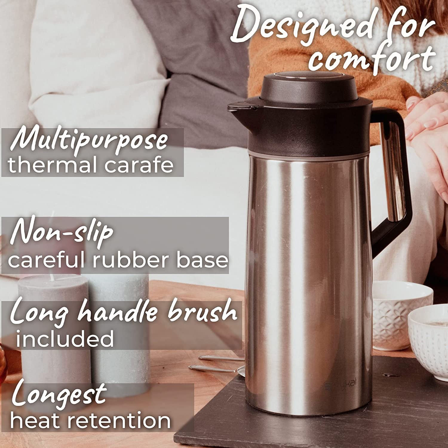 - Pykal Thermal Coffee Jug | 68 Oz | Vacuum Insulated Hot Drink Carafe 8HR 65C -