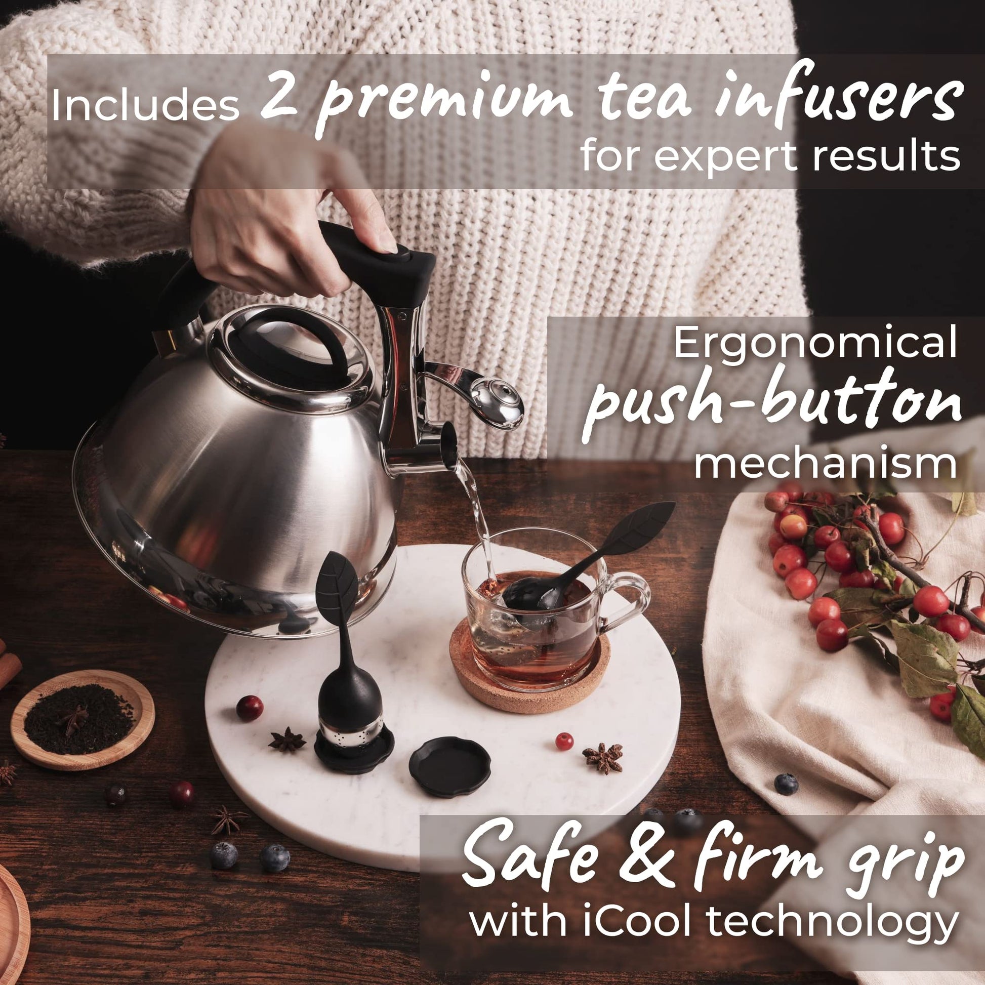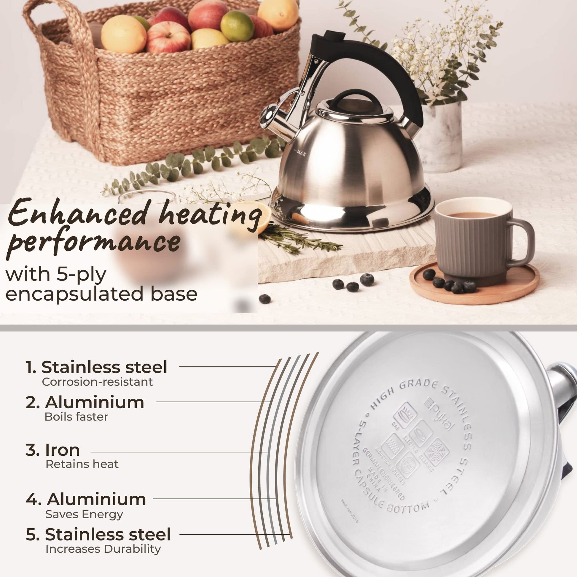 - Pykal Whistling Tea Kettle for Stove Top | 2.8l | Stainless Steel iCool Handle Tea Pot -