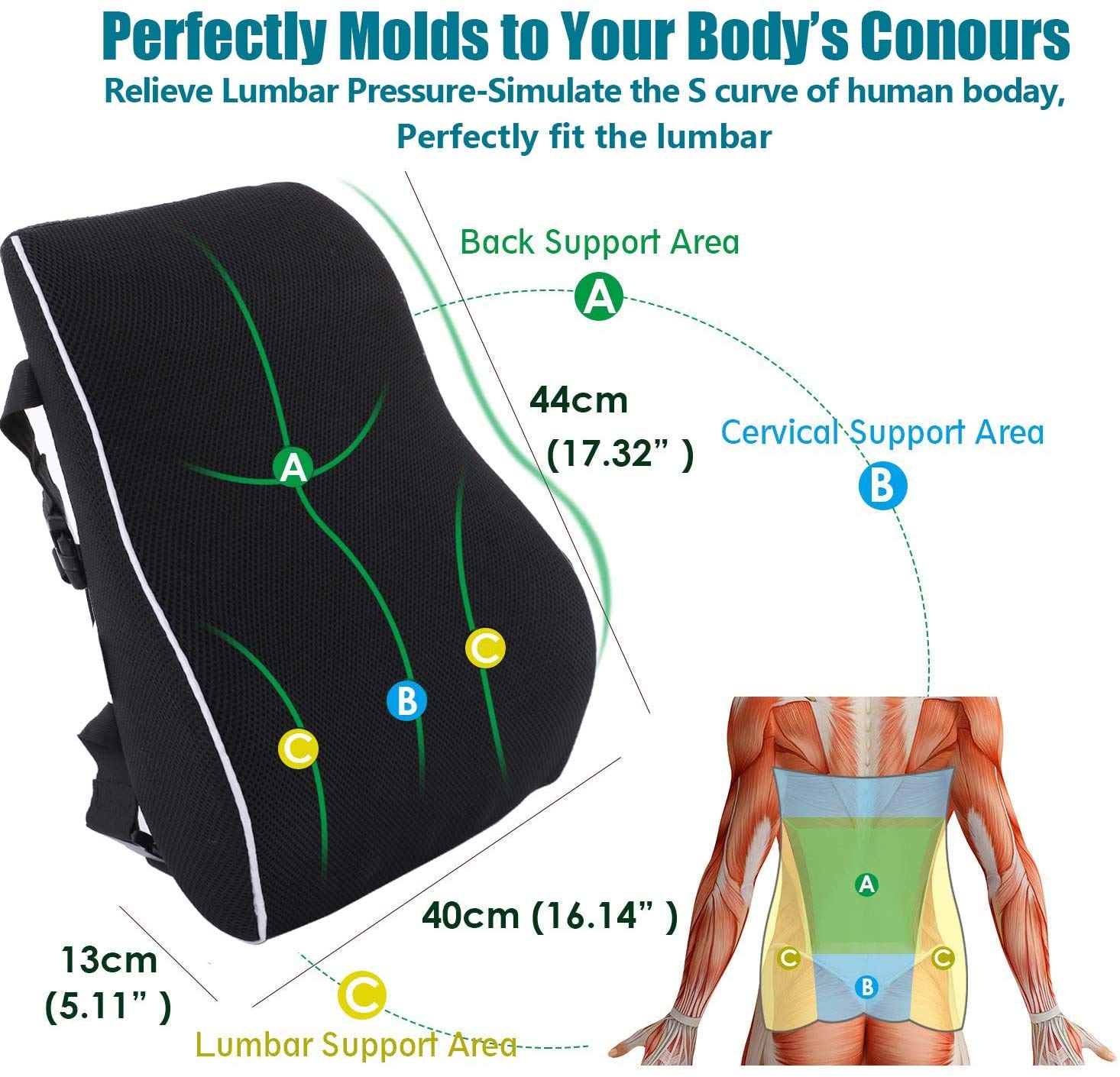 - QUTOOL Lumbar Support Pillow | Office Chair Car Memory Foam Back Cushion -