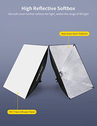 - RALENO® Softbox Lighting Kit | 2×20’’×20’’ Photography Studio Lighting with 50W 5500K LED Bulbs -